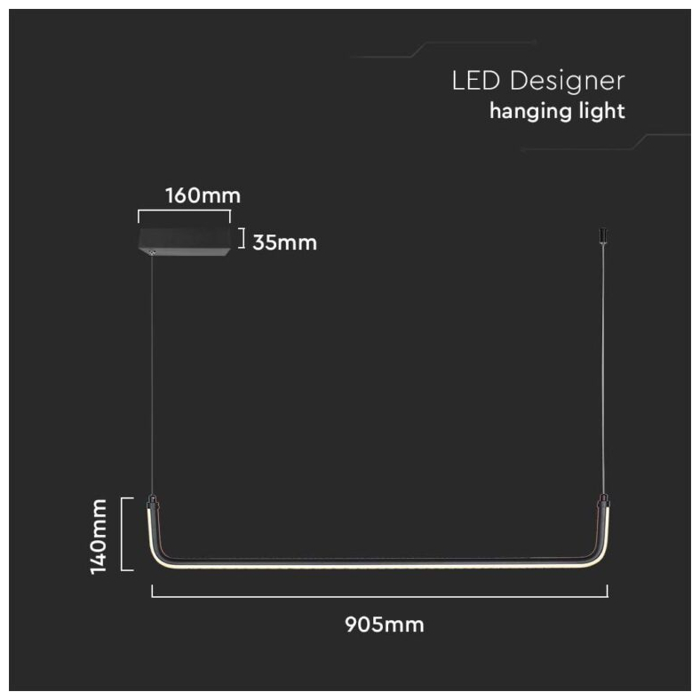 V-TAC Μοντέρνο Κρεμαστό Φωτιστικό με Ενσωματωμένο LED σε Μαύρο Χρώμα