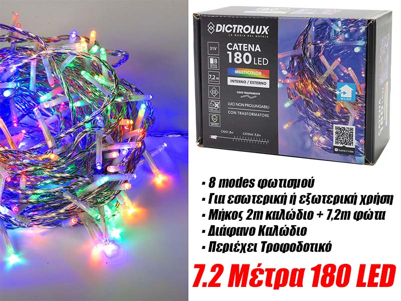 180 Πολύχρωμα LED Εξωτερικού Χώρου Διάφανο