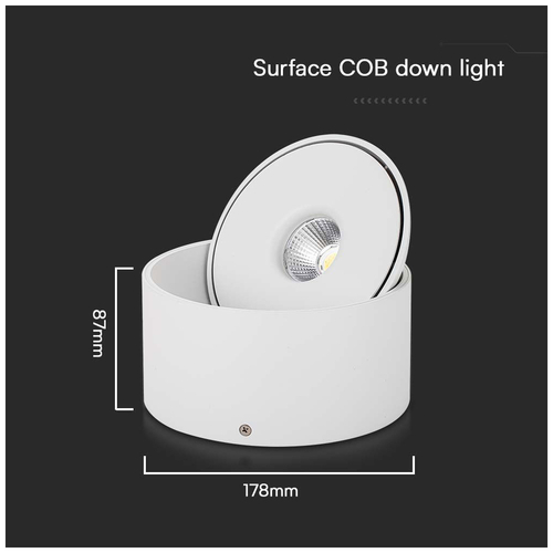 V-TAC Σπoτ Οροφής Με Κινούμενη Κεφαλή LED COB 28W 2500lm 25° IP20 Ø180mm Στρογγυλό CCT 3σε1 Λευκό Σώμα 23157