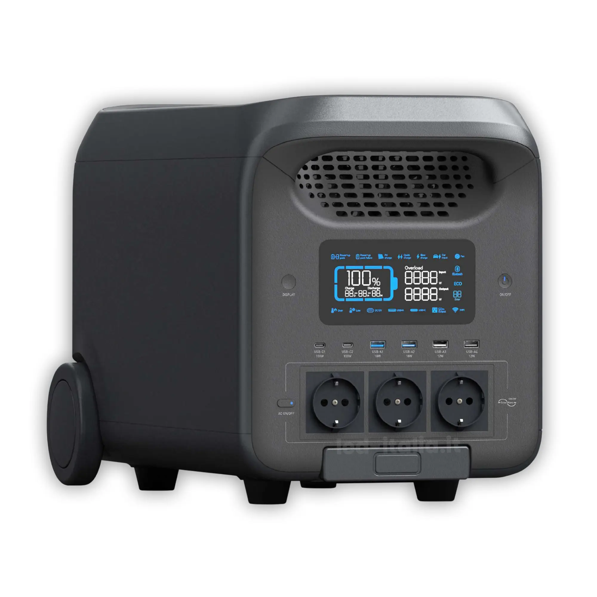 Ο φορητός σταθμός ενέργειας της VTAC αποτελεί μια κορυφαία λύση παροχής ισχύος, προσφέροντας ονομαστική απόδοση 3000W (με μέγιστο έως 5000W) και μεγάλη χωρητικότητα μπαταρίας 2560Wh. Είναι σχεδιασμένος για να τροφοδοτεί με ασφάλεια ένα ευρύ φάσμα συσκευών, από οικιακά είδη και εργαλεία έως ευαίσθητο ηλεκτρονικό εξοπλισμό, χάρη στην έξοδο AC καθαρού ημιτόνου. Η ενσωματωμένη τεχνολογία inverter bidirezionale εξασφαλίζει τη βέλτιστη διαχείριση της ενέργειας και τη μέγιστη αποδοτικότητα σε κάθε χρήση.