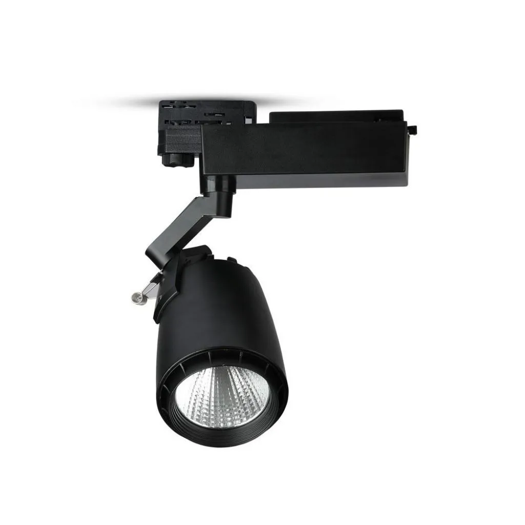 Το VTAC φωτιστικό ράγας LED 33W αποδίδει θερμό λευκό φως 3000K με φωτεινή ροή 2300 lumen και στενή δέσμη 22°, ιδανικό για accent φωτισμό προϊόντων, βιτρινών και σημείων ενδιαφέροντος σε επαγγελματικούς χώρους.