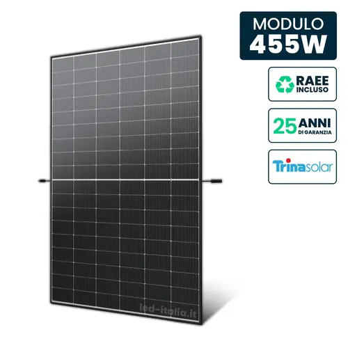 Το V-TAC Φωτοβολταϊκό Πάνελ 455W της Trina Solar (Vertex S+) βασίζεται σε κυψέλες N-Type i-TOPCon, προσφέροντας απόδοση 22,8% και εξαιρετική συμπεριφορά σε χαμηλή ακτινοβολία. Η τεχνολογία διπλού γυαλιού εξασφαλίζει αυξημένη μηχανική αντοχή και μεγαλύτερη ενεργειακή παραγωγή σε βάθος χρόνου.