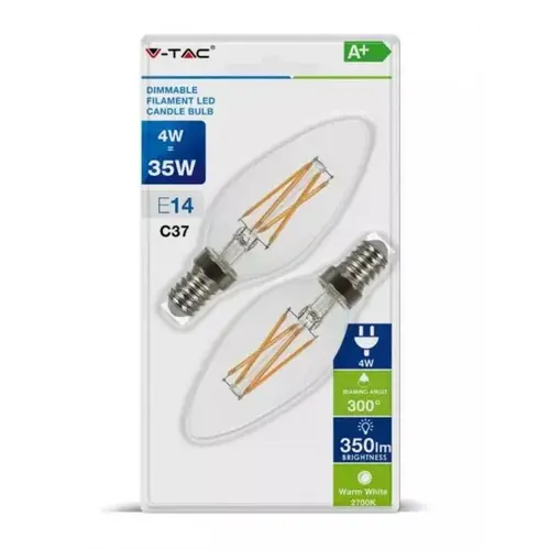 Η λάμπα LED filament E14 4W προσφέρει θερμό λευκό φως 2700K με φωτεινότητα 350 lumen, δημιουργώντας ατμόσφαιρα ζεστασιάς και κομψότητας. Το διάφανο γυαλί και το στριφτό νήμα μιμούνται τέλεια τις παλιές λάμπες πυράκτωσης, αλλά με σύγχρονη ενεργειακή απόδοση.