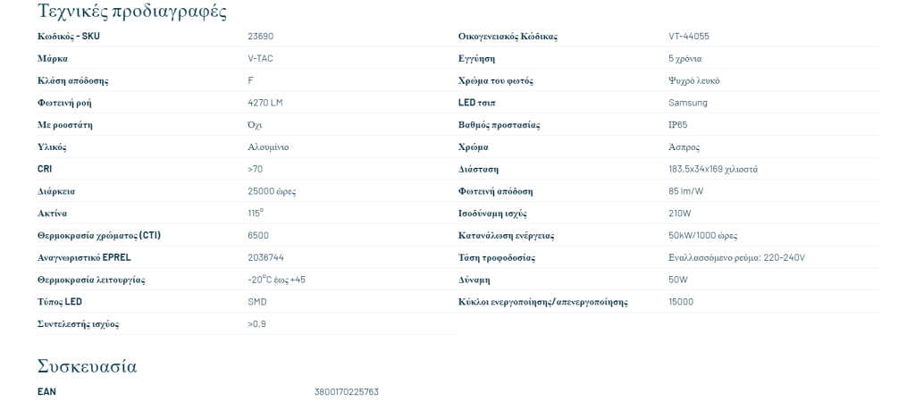 Με ισχύ 50W και φωτεινότητα 4270 lumens, ο προβολέας εκπέμπει ένα ψυχρό λευκό φως (6500K) που εξασφαλίζει έντονο και έντονο φωτισμό. Η ευρεία γωνία δέσμης 115° εξασφαλίζει βέλτιστη κάλυψη φωτός, ιδανική για φωτισμό προσόψεων, αθλητικών εγκαταστάσεων, χώρων στάθμευσης αυτοκινήτων και διαφημιστικών πινακίδων.