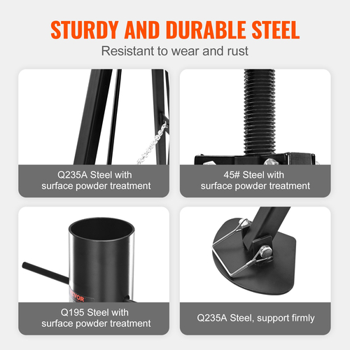 Κατασκευασμένο για να αντέξει: Κατασκευασμένο από ατσάλι υψηλής αντοχής Q235A για τη βάση του γρύλου και ατσάλι Q195 για το κύπελλο κοτσαδόρου, το 5ο τρίποδο σταθεροποίησης τροχού μας είναι κατασκευασμένο για ανθεκτικότητα. Η επιφάνεια με βαφή πούδρας αντιστέκεται στη διάβρωση και τη σκουριά, ενώ οι στιβαρές 45 βίδες από χάλυβα εξασφαλίζουν μεγάλη διάρκεια ζωής.
