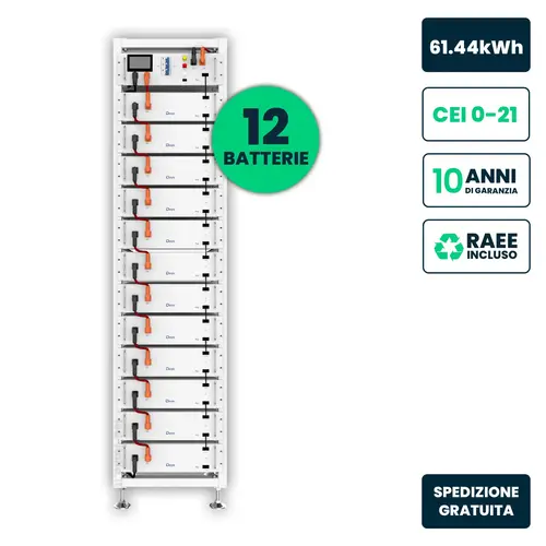 Το σύστημα αποτελείται από 12 μονάδες μπαταρίας των 5,12kWh, συνδεδεμένες σε σειρά και διαχειριζόμενες από εξωτερικό BMS PRO νέας γενιάς. Το BMS προσφέρει προστασία από υπερφόρτιση, υπερεκφόρτιση, υπερθέρμανση και ανισορροπία κυψελών, ενώ υποστηρίζει αναβαθμίσεις firmware και μελλοντική επεκτασιμότητα. Η εγκατάσταση σε μεταλλικό rack (IP20) εξασφαλίζει οργανωμένη τοποθέτηση σε τεχνικούς χώρους και ηλεκτρολογικούς πίνακες.