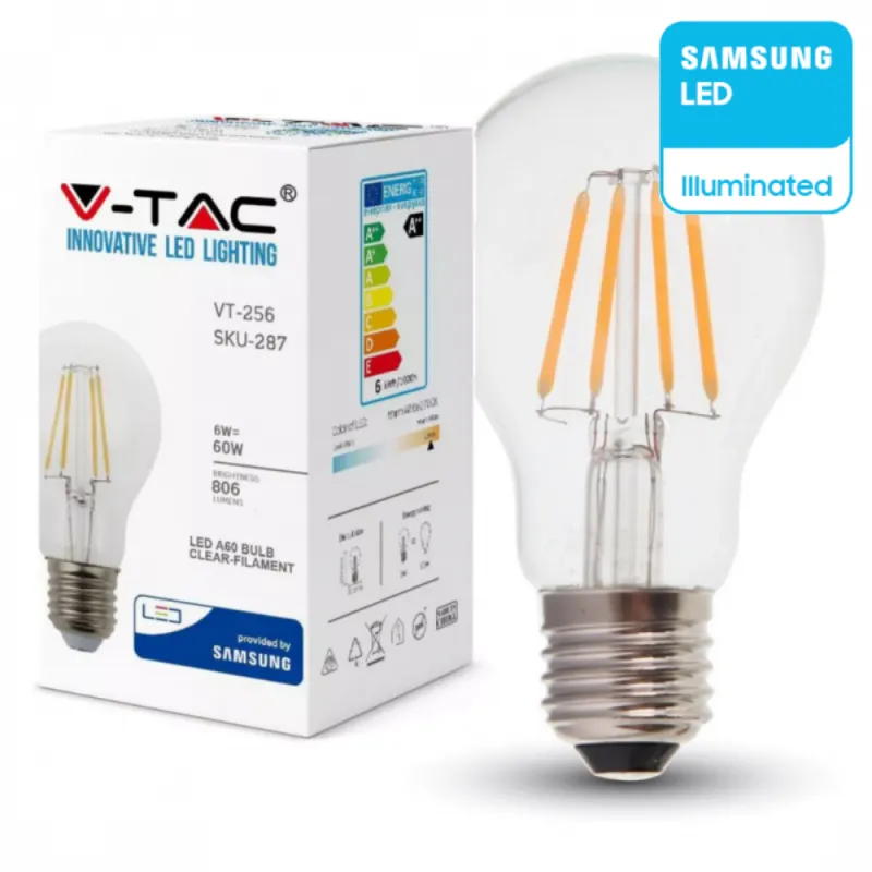 Ο λαμπτήρας LED A60 της σειράς V-TAC PRO αντιπροσωπεύει την κορυφή της τεχνολογίας στον οικιακό και επαγγελματικό φωτισμό. Εξοπλισμένος με Chip LED της Samsung, προσφέρει απαράμιλλη αξιοπιστία και σταθερότητα φωτισμού. Ο σχεδιασμός Filament (νήματος) συνδυάζει την παραδοσιακή εμφάνιση των κλασικών λαμπτήρων με τη σύγχρονη τεχνολογία, καθιστώντας τον ιδανικό για φωτιστικά όπου ο λαμπτήρας είναι εμφανής, προσδίδοντας μια vintage αισθητική στον χώρο σας.