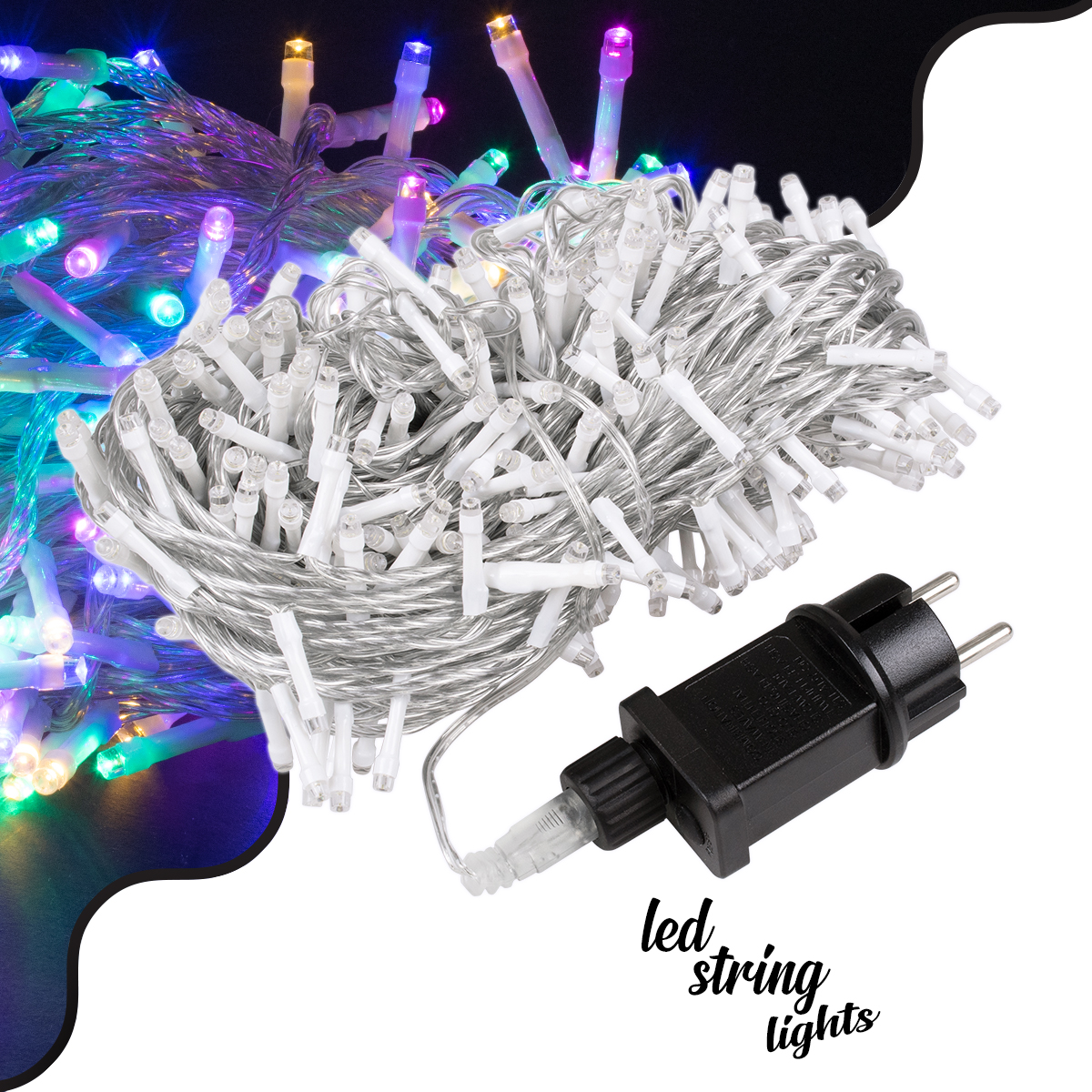 85841 Διακοσμητική Γιρλάντα 33 Μέτρα με Controller 8 Προγραμμάτων Εναλλαγών Φωτισμού - Επεκτεινόμενη 300 LED 3.6W AC 230V με Διάφανο Καλώδιο & Πρίζα Schuko Αδιάβροχη IP44 RGB Μ33m