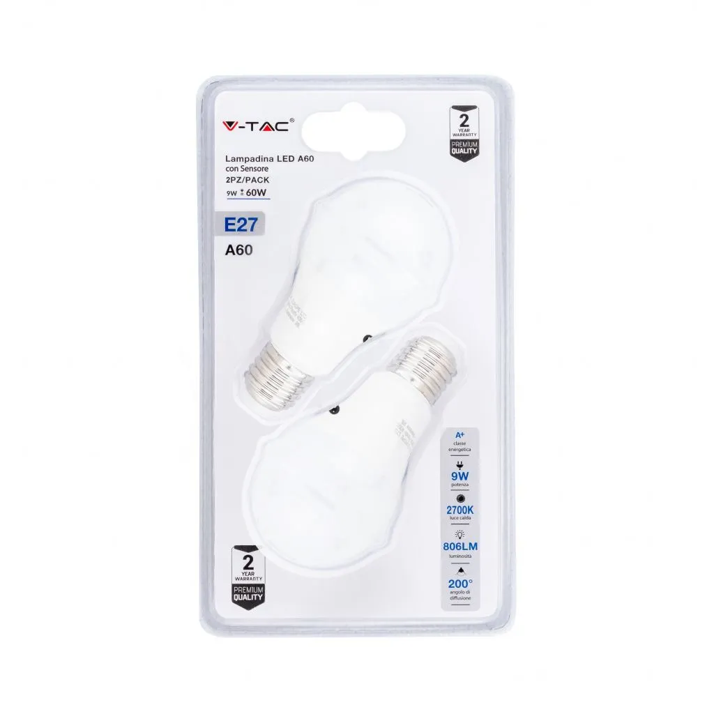Το σετ λαμπτήρων LED E27 της V-TAC διαθέτει ενσωματωμένο αισθητήρα ημέρας/νύχτας (Twilight Sensor), επιτρέποντας την αυτόματη ενεργοποίηση του φωτισμού όταν πέφτει το σκοτάδι και την απενεργοποίηση με το πρώτο φως της ημέρας. Η λειτουργία αυτή προσφέρει ευκολία και ασφάλεια, καθιστώντας τους ιδανικούς για τοποθέτηση σε εισόδους, εξωτερικούς διαδρόμους και πυλωτές.