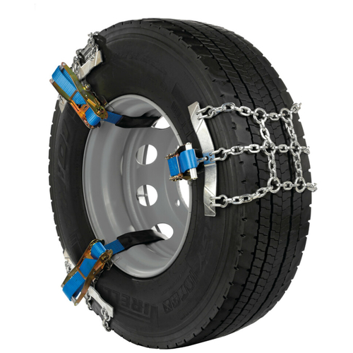 Αλυσίδα φορτηγού, ιταλικής προέλευσης, κατασκευασμένη από γαλβανιζέ σίδερο (ατσάλι, το οποίο έχει προστατευτικό επίστρωμα ψευδαργύρου, που προστατεύει το ατσάλι από την οξείδωση). Διαθέτει 3 κάθετες σειρές και 2 οριζόντιες από αλυσίδα σε σχήμα "D" με ενισχυμένους σταυρωτούς συνδέσμους και ιμάντα δέσης με καστάνια που προσαρμόζεται εύκολα και γρήγορα πάνω στον τροχό. Ιδανικό προιόν για οχήματα βαρέως τύπου, φορτηγά και SUV για ασφαλή οδήγηση σε χιόνι και πάγο.