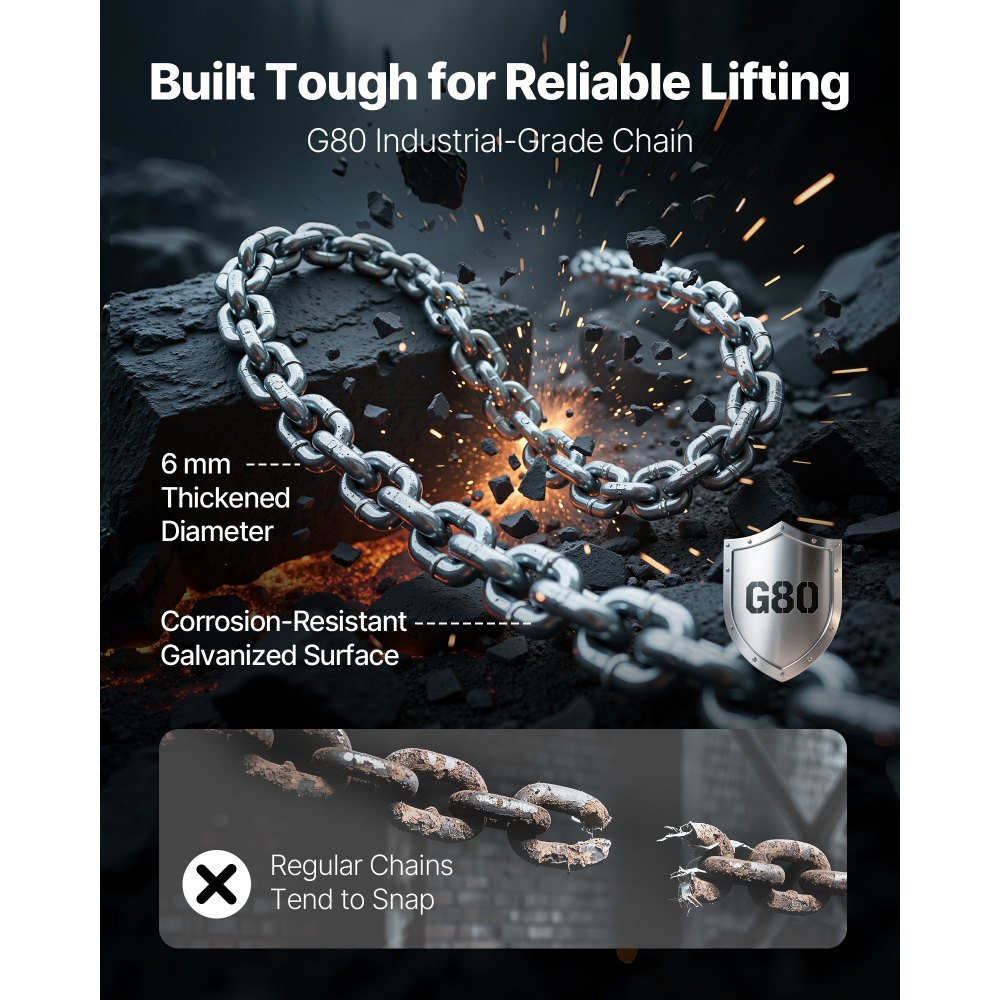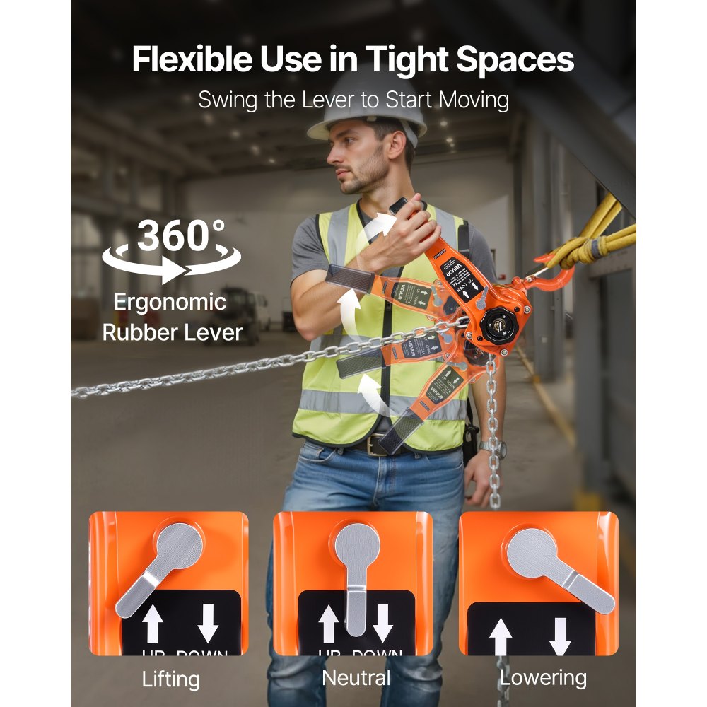 Μέγιστο φορτίο 1T: Αυτός ο χειροκίνητος ανυψωτήρας με μοχλό διαθέτει κατασκευή από χάλυβα που αντιστέκεται στις κρούσεις και τη θραύση, επιτρέποντας σε ένα άτομο να μετακινεί αβίαστα φορτία έως 1T / 2200 λίβρες. Ιδανικό για τη μεταφορά πεσμένων δέντρων, την ανύψωση χαλύβδινων δοκών, μηχανημάτων, εξαρτημάτων κινητήρα. Εύκολη λειτουργία: Το ανυψωτικό αλυσίδας με μοχλό περιλαμβάνει εργονομική λαβή που περιστρέφεται 360° με αντιολισθητική λαβή. Τα βαριά φορτία μπορούν να μετακινηθούν με ελάχιστη προσπάθεια, για περιορισμένους χώρους εργασίας. Ένας επιλογέας τριών θέσεων μπορεί να αλλάξει μεταξύ των λειτουργιών ανύψωσης, νεκράς και κατεβάσματος. Ασφαλές και αξιόπιστο φρενάρισμα: Αυτό το χειροκίνητο βαρούλκο αλυσίδας διαθέτει φρένο διπλής άρθρωσης Weston που εμπλέκεται με γρανάζια για ακριβή έλεγχο. Η ισχυρή κατασκευή αποτρέπει την ολίσθηση και τις απότομες πτώσεις, κατανέμει ομοιόμορφα την πίεση, ενισχύοντας την ασφάλεια και παρατείνοντας τη διάρκεια ζωής. Αλυσίδα βιομηχανικής ποιότητας G80: Το βαρούλκο αλυσίδας διαθέτει αλυσίδα από κράμα G80 10 ft/3 m, πάχους 6 mm, γαλβανισμένη για αντοχή στη διάβρωση. Ισχυρό και στιβαρό για σκληρές εργασίες, εξασφαλίζοντας αξιόπιστη ανύψωση σε κατασκευές, αποθήκες και βιομηχανικές εργασίες. Ομαλή λειτουργία: Αυτό το βαρούλκο πτώσης αλυσίδας περιλαμβάνει μια αναβαθμισμένη οδηγούμενη υποδοχή για ομαλή ανύψωση χωρίς μπλοκάρισμα. Ο περιστρεφόμενος γάντζος 360° επιτρέπει ασφαλή χρήση σε πολλαπλές γωνίες, αποφεύγοντας την περιστροφή και αυξάνοντας την απόδοση για δύσκολες εφαρμογές ανύψωσης.