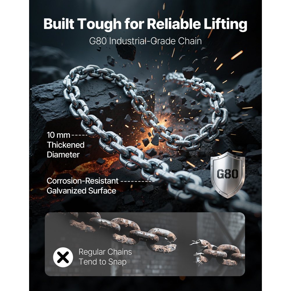 Μέγιστο φορτίο 3T: Αυτός ο χειροκίνητος ανυψωτήρας με μοχλό διαθέτει κατασκευή από χάλυβα που αντιστέκεται στις κρούσεις και τη θραύση, επιτρέποντας σε ένα άτομο να μετακινεί αβίαστα φορτία έως 3T / 6600 λίβρες. Ιδανικό για τη μεταφορά πεσμένων δέντρων, την ανύψωση χαλύβδινων δοκών, μηχανημάτων, εξαρτημάτων κινητήρα. Εύκολη λειτουργία: Το ανυψωτικό αλυσίδας με μοχλό περιλαμβάνει εργονομική λαβή που περιστρέφεται 360° με αντιολισθητική λαβή. Τα βαριά φορτία μπορούν να μετακινηθούν με ελάχιστη προσπάθεια, για περιορισμένους χώρους εργασίας. Ένας επιλογέας τριών θέσεων μπορεί να αλλάξει μεταξύ των λειτουργιών ανύψωσης, νεκράς και κατεβάσματος. Ασφαλές και αξιόπιστο φρενάρισμα: Αυτό το χειροκίνητο βαρούλκο αλυσίδας διαθέτει φρένο διπλής άρθρωσης Weston που εμπλέκεται με γρανάζια για ακριβή έλεγχο. Η ισχυρή κατασκευή αποτρέπει την ολίσθηση και τις απότομες πτώσεις, κατανέμει ομοιόμορφα την πίεση, ενισχύοντας την ασφάλεια και παρατείνοντας τη διάρκεια ζωής. Αλυσίδα βιομηχανικής ποιότητας G80: Το βαρούλκο αλυσίδας διαθέτει αλυσίδα από κράμα G80 20 Ft / 6 m, πάχους 10 mm, γαλβανισμένη για αντοχή στη διάβρωση. Ισχυρή και στιβαρή για σκληρές εργασίες, εξασφαλίζοντας αξιόπιστη ανύψωση σε κατασκευές, αποθήκες και βιομηχανικές εργασίες. Ομαλή λειτουργία: Αυτό το βαρούλκο πτώσης αλυσίδας περιλαμβάνει μια αναβαθμισμένη οδηγούμενη υποδοχή για ομαλή ανύψωση χωρίς μπλοκάρισμα. Ο περιστρεφόμενος γάντζος 360° επιτρέπει ασφαλή χρήση σε πολλαπλές γωνίες, αποφεύγοντας την περιστροφή και αυξάνοντας την απόδοση για δύσκολες εφαρμογές ανύψωσης.