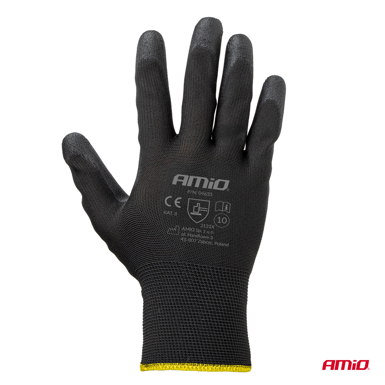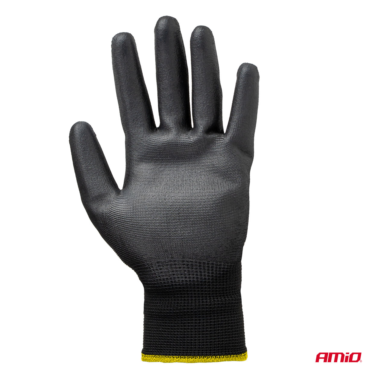 Η επικάλυψη πολυουρεθάνης (PU) προσφέρει μια εξαιρετικά λεπτή αλλά ανθεκτική προστατευτική στρώση στην παλάμη και τα δάκτυλα. Αυτό επιτρέπει στον χρήστη να χειρίζεται με ευκολία μικρές βίδες και εξαρτήματα, ενώ η ελαστική τους σύνθεση προσφέρει άψογη εφαρμογή στο μέγεθος 10, επιτρέποντας στο δέρμα να αναπνέει κατά τη διάρκεια της ημέρας.