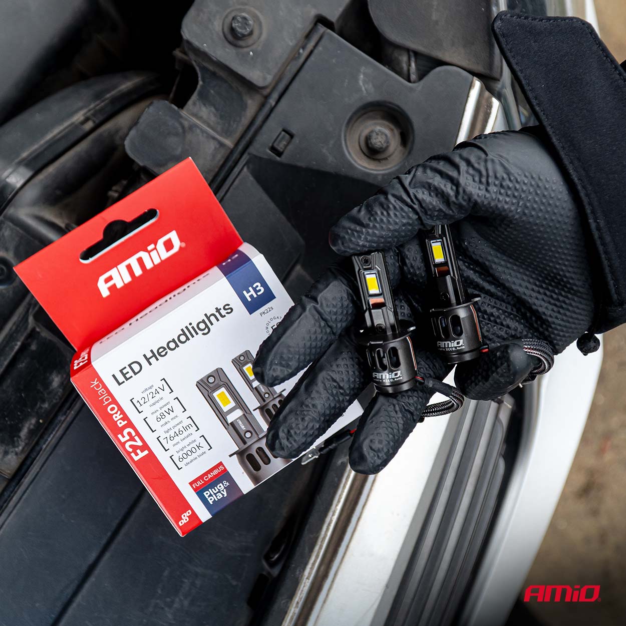 Amio - Λαμπτήρες LED F25 PRO Black Edition H3 68W 12-24V Full CANBUS 7.646lm 6.000K για Επιβατικά Αυτοκίνητα και Φορτηγά - 2 τεμ.