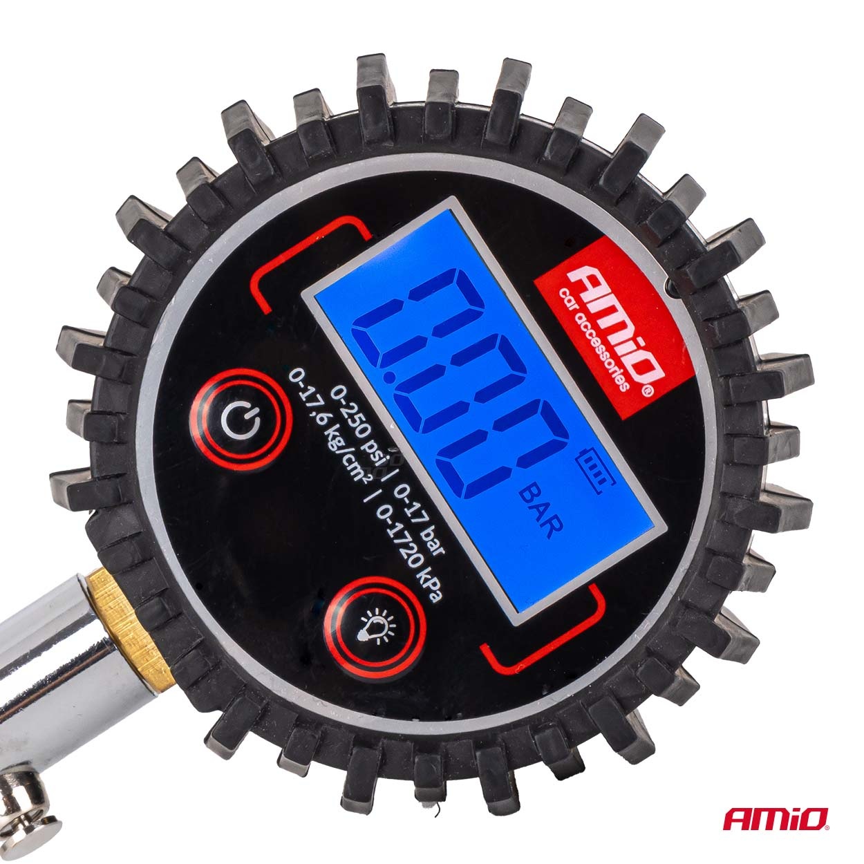 Amio - Ψηφιακό Μανόμετρο Πίεσης Ελαστικών 17 bar με Σωλήνα & Βαλβίδα Εκτόνωσης