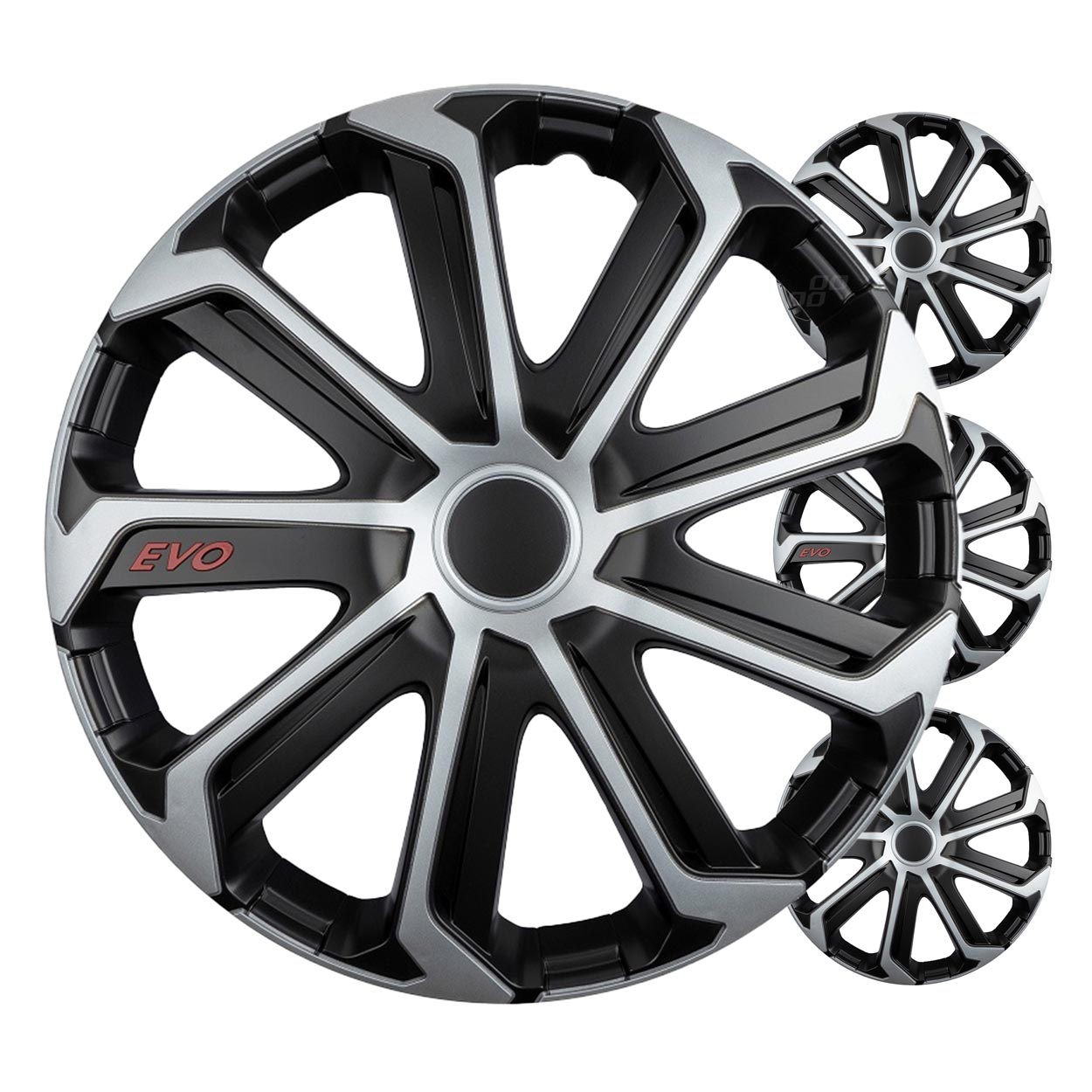 - 4 x Τάσια τροχών 15'' ιντσών EVO (Μαύρο/Ασημί)