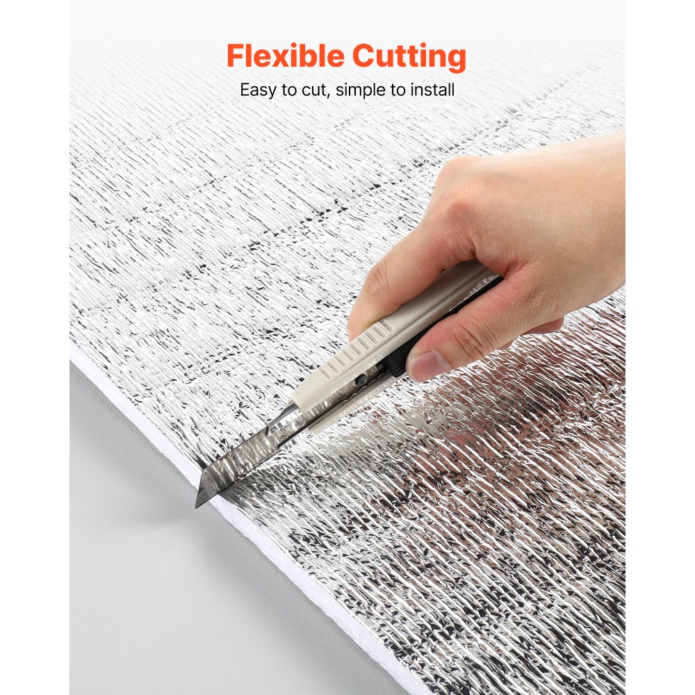 Σχεδιασμός 3 σε 1: Το ανακλαστικό μονωτικό ρολό VEVOR 76,2mx 1,22m διαθέτει ευέλικτο σχεδιασμό 3 σε 1: φράγμα ακτινοβολίας + μόνωση + έλεγχος υδρατμών, εξασφαλίζοντας εξαιρετική θερμική απόδοση. Το εξαιρετικό φράγμα ακτινοβολίας σας κρατά δροσερούς το καλοκαίρι και ζεστούς τον χειμώνα. Προστασία τριπλής στρώσης: Το αλουμινόχαρτο αντανακλά τη θερμότητα, ο αφρός EPE κλειδώνει τη θερμοκρασία και η γαλακτώδης λευκή μεμβράνη PE εμποδίζει την υγρασία. Ο θερμομονωτικός κύλινδρος πάχους 3 mm αντανακλά αποτελεσματικά το ηλιακό φως και εμποδίζει τη μεταφορά θερμότητας το καλοκαίρι, αποτρέποντας παράλληλα την απώλεια θερμότητας τον χειμώνα. Αντανακλά πάνω από 95% της θερμότητας: Με επίστρωση αλουμινίου υψηλής πυκνότητας με εξαιρετική ανακλαστικότητα θερμότητας, αυτό το φράγμα ακτινοβολίας από αφρώδες υλικό EPE από αλουμινόχαρτο αλουμινίου αντανακλά περισσότερο από 95% της ηλιακής θερμότητας, παρέχοντας ανώτερη θερμομόνωση και φραγμό θερμότητας. Εύκολη εγκατάσταση: Αυτό το μονωτικό ρολό αλουμινίου είναι εύκολο στην κοπή και την εγκατάσταση, απλώς προσαρμόστε το μέγεθος και το σχήμα του ρολού στις διαφορετικές σας ανάγκες. Όταν δεν χρησιμοποιείται, μπορεί εύκολα να διπλωθεί για εξοικονόμηση χώρου και βολική μεταφορά. Ευέλικτες εφαρμογές: Η θερμομονωτική μας θωράκιση είναι ανθεκτική σε σκίσιμο και τρύπημα, ανθεκτική στις γρατσουνιές και τη φθορά, ανθεκτική και ελαφριά. Είναι ιδανική για παράθυρα, γκαραζόπορτες, τροχόσπιτα, σπίτια, στέγες μπανγκαλόου κ.λπ., προσφέροντας αποτελεσματικό μπλοκάρισμα θερμότητας και μόνωση.