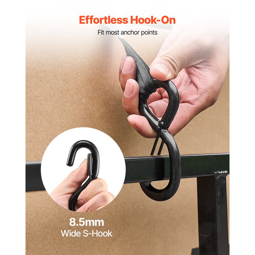Ανθεκτικότατες Ονομαστικές Ονομασίες Φορτίου: Αυτός ο ιμάντας με καστάνια προσφέρει φορτίο εργασίας 770 λίβρες και αντοχή σε θραύση 1540 λίβρες, έτσι ώστε ο εξοπλισμός σας να παραμένει στη θέση του σε στάσεις και χτυπήματα. Είναι μια καθαρή νίκη για ποδήλατα, εργαλεία και ογκώδη κουτιά. Αυτόματη μύξη με ένα άγγιγμα: Πιέζετε το κούμπωμα και το ιμάντα κλείνει ξανά με φερμουάρ—χωρίς κούρδισμα με το χέρι, χωρίς κόπο. Μαζεύετε τους ιμάντες πρόσδεσης πιο γρήγορα μετά από μετακομίσεις, δουλειές ή περιπέτειες το Σαββατοκύριακο. Κατασκευή ανθεκτική στις καιρικές συνθήκες: Η καστάνια του ιμάντα πρόσδεσης φορτίου χρησιμοποιεί ανθρακούχο χάλυβα με ηλεκτροστατική βαφή πούδρας, τα άγκιστρα S είναι επικαλυμμένα με βινύλιο και ο ιμάντας είναι από πολυεστέρα. Αυτός ο συνδυασμός είναι ανθεκτικός στο ηλιακό φως, την υγρασία και την τριβή για διαρκή απόδοση. Γάντζος, κλικ, πάμε: Τα φαρδιά γάντζοι S-στόμιο των ιμάντων πρόσδεσης με καστάνια κουμπώνουν σε καρότσες φορτηγών, δακτυλίους ρυμουλκούμενου ή άγκυρες φορτίου σε δευτερόλεπτα. Αποκτάτε σταθερό κράτημα για καθημερινές μεταφορές, οδικά ταξίδια και διαδρομές σε εργοτάξια. Εύκολο Σύσφιγμα με Μόνη Χρήση: Η καστάνια με μοχλό σάς επιτρέπει να ασφαλίζετε τον ιμάντα πρόσδεσης του φορτηγού γρήγορα και ομοιόμορφα. Ένα άτομο μπορεί να ασφαλίσει ένα φορτίο από την αρχή μέχρι το τέλος, ώστε να ξεκινήσετε νωρίτερα.