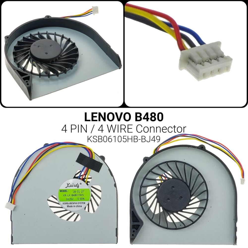 4 PIN LENOVO CPU FANB480 B480A B485-B490 B590 M490 M495 E49 DFS531205HCOT DC:5V 0.28A-0.50A Lenovo B480 B480A B485-B490 B590 M490 M495 E49 KSB06105HB -BJ49 VC343 P10V480 B480 B480A B485 B490 B590 E49 M490 M495 Lenovo B480 B480A B485-B490 B590 M490 M495 XR-LE-B480 4PIN KSB06105HB-BJ49, 23.10619.001, 60.4TE15.001 60.4TE17.001, 60.4XB17.001, DFS531205HCOT, BATA0710R5H, 23.10618.001 KSB06105HA-B480