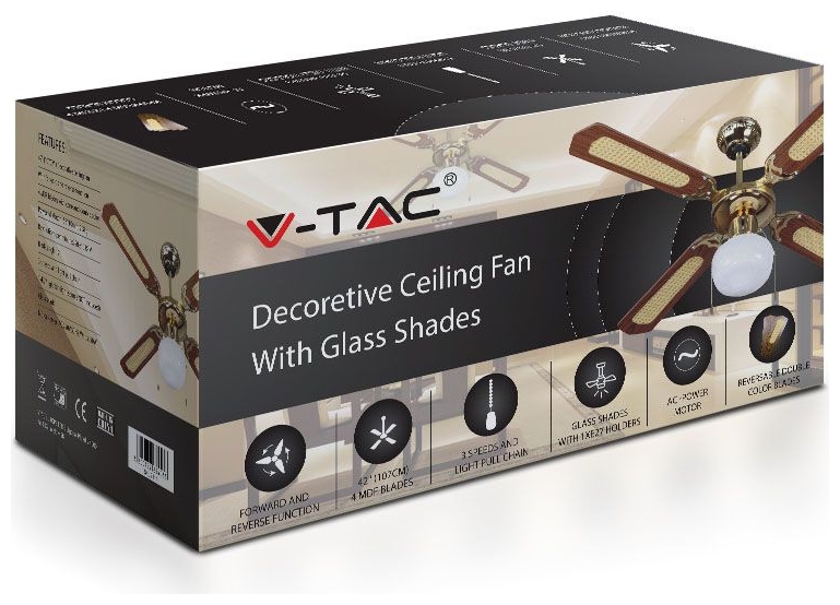 Ανεμιστήρας Οροφής V-TAC 50W με 4 πτερύγια μαζί με Φωτιστικό με Ντουί Ε27 Ρυθμιζόμενος