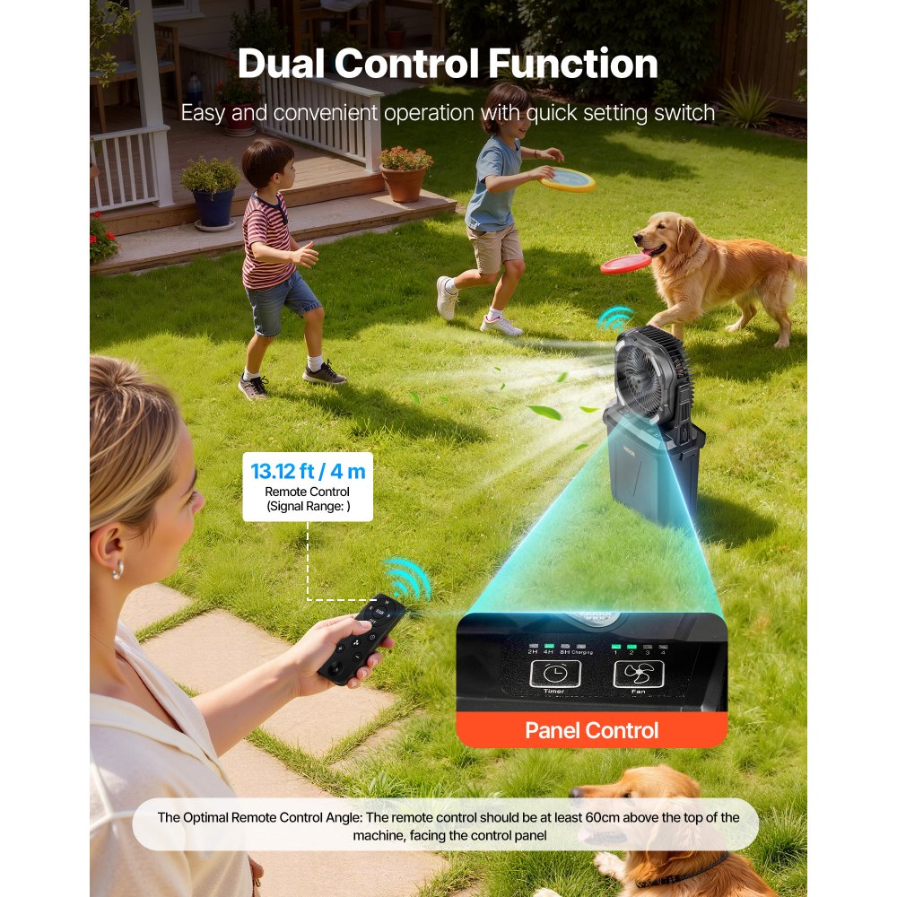 Μεγάλη δεξαμενή νερού: Εξοπλισμένος με δεξαμενή νερού 9 λίτρων, αυτός ο ανεμιστήρας ψεκασμού προσφέρει μακράς διαρκείας ψεκασμό μέσω τεσσάρων επιλέξιμων λειτουργιών ψεκασμού. Ο ρυθμιζόμενος σχεδιασμός ταιριάζει σε διάφορα περιβάλλοντα και προσωπικές προτιμήσεις, περιορίζοντας τις επαναφορτίσεις, διατηρώντας παράλληλα συνεχή και άνετη ψύξη. Όταν το νερό στον κάδο είναι χαμηλό, η ενεργοποίηση της λειτουργίας ύγρανσης θα προκαλέσει θόρυβο. Όταν χρησιμοποιείτε τη λειτουργία ύγρανσης, προσθέστε νερό εγκαίρως. Ρυθμιζόμενα επίπεδα αέρα: Με κινητήρα ≥2700RPM, ο φορητός μας ψεκαστήρας παρέχει ισχυρή και αθόρυβη κυκλοφορία. Τέσσερις ρυθμιζόμενες ταχύτητες αέρα σάς επιτρέπουν να εναλλάσσεστε εύκολα μεταξύ απαλής και ισχυρής ψύξης, υποστηρίζοντας διάφορες ρυθμίσεις, προσφέροντας παράλληλα σταθερή άνεση και αναζωογονητική ροή αέρα. Κατά τον ψεκασμό, η ομίχλη νερού συλλέγεται σε σταγονίδια, τα οποία ρέουν μέσω του πάνελ στο κανάλι νερού στο κάλυμμα και πίσω στον κουβά νερού, εμποδίζοντας το δάπεδο να βραχεί. Μπαταρία υψηλής χωρητικότητας: Αυτός ο ανεμιστήρας υδρονέφωσης VEVOR διαθέτει μπαταρία 10000mAh που φορτίζει σε περίπου 10,5 ώρες και προσφέρει μακρά ψύξη μετά από κάθε φόρτιση. Υποστηρίζει καθημερινή χρήση και εξωτερικές δραστηριότητες με σταθερή ροή αέρα και υδρονέφωση, επιτρέποντάς σας να απολαμβάνετε αναζωογονητική άνεση όπου κι αν βρίσκεστε. Ρυθμιζόμενες λειτουργίες φωτισμού: Ο ανεμιστήρας ψύξης νερού μας παρέχει πέντε επιλογές φωτισμού, όπως λευκό, κόκκινο, μπλε, διαβάθμισης και εφέ λάμψης, συμβάλλοντας στη διαμόρφωση της ιδανικής εξωτερικής ατμόσφαιρας. Η κλίση 0–120° και ο χρονοδιακόπτης τριών επιπέδων υποστηρίζουν άνεση πλήρους γωνίας για διαφορετικές δραστηριότητες. Διπλές επιλογές ελέγχου: Με τηλεχειριστήριο και πίνακα ελέγχου, αυτός ο ανεμιστήρας ψεκασμού νερού VEVOR προσαρμόζεται στις συνήθειές σας για εύκολη χρήση. Μπορείτε να αλλάζετε ταχύτητες, να αλλάζετε λειτουργίες ή να ρυθμίζετε γρήγορα το χρονοδιακόπτη, διατηρώντας τη λειτουργία βολική και αποτελεσματική σε ένα ευρύ φάσμα καθημερινών ρυθμίσεων.