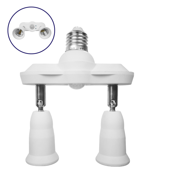 Αντάπτορας από 1xE27 σε 2xE27 με Κινούμενες Σπαστές Βάσεις και Ενσωματωμένο Αισθητήρα Κίνησης GloboStar 77865