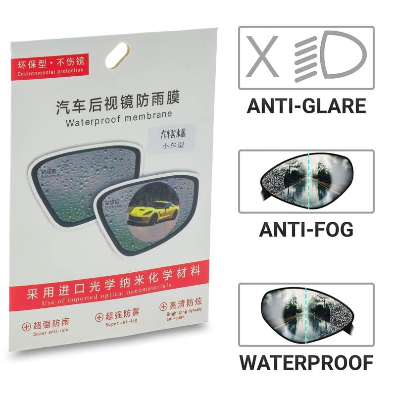 Η αδιάβροχη μεμβράνη για τον καθρέφτη του αυτοκινήτου σας και αυξάνει την ορατότητα ακόμα και με βροχή. Επίσης αποτρέπει την συσσώρευση σκόνης και λάσπης ώστε να παραμένουν καθαρή οι καθρέφτες σας. Αυξάνει την ορατότητα στην βροχή, στην ομίχλη και στο χιόνι.Διατίθεται σε σετ των 2 τεμαχίων και τοποθετείτε πολύ εύκολα. Χαρακτηριστικά: 2 τεμάχια Αυξάνει την ορατότητα Αδιάβροχη Αντιθαμβωτική Εύκολη τοποθέτηση Διαστάσεις: 95mm DOA 14 Ημερών