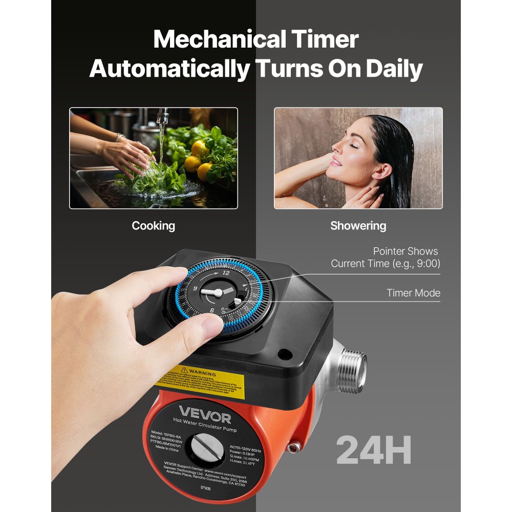 Άμεσο ζεστό νερό: Με μέγιστη ροή 10,0 GPM και ανύψωση κεφαλής 21,6 ft, αυτό το κιτ αντλίας ανακυκλοφορίας παρέχει την ιδανική θερμοκρασία σε κάθε βρύση και ντους σε δευτερόλεπτα. Πείτε αντίο στη σπατάλη κρύου νερού εξοικονομώντας παράλληλα ενέργεια και νερό. Προγραμματιζόμενος χρονοδιακόπτης: Διαθέτει ενσωματωμένο μηχανικό χρονοδιακόπτη που σας επιτρέπει να προγραμματίσετε πότε λειτουργεί η αντλία κυκλοφορίας ζεστού νερού. Προσαρμόστε την παροχή ζεστού νερού ώστε να ταιριάζει με το ημερήσιο πρόγραμμα του νοικοκυριού σας, εξασφαλίζοντας άνεση και εξοικονομώντας ενέργεια. Πολλαπλής χρήσης εφαρμογή: Αυτή η αντλία κυκλοφορίας ζεστού νερού παρέχει αποτελεσματική κυκλοφορία σε πολλά οικιακά συστήματα. Ιδανική για ενδοδαπέδια θέρμανση, λέβητες, ηλιακούς και ηλεκτρικούς θερμοσίφωνες, βρύσες κουζίνας, καλοριφέρ, πλυντήρια ρούχων, τουαλέτες κ.λπ. Κατασκευασμένη για Ασφάλεια και Αξιοπιστία: Κατασκευασμένη με κεφαλή αντλίας από ανοξείδωτο ατσάλι υψηλής ποιότητας, αυτή η αντλία ανακυκλοφορίας ζεστού νερού είναι ανθεκτική στη σκουριά και σχεδιασμένη για ασφαλή και καθαρή παροχή πόσιμου νερού χωρίς δυσάρεστες οσμές. Εύκολη εγκατάσταση: Το κιτ κυκλοφορητή ζεστού νερού περιλαμβάνει όλα τα απαραίτητα αξεσουάρ, καθώς και ένα ζεύγος προσαρμογέων και στεγανοποιητικών παρεμβυσμάτων. Τοποθετείται απευθείας στην έξοδο των εσωτερικών θερμοσιφώνων δεξαμενής χωρίς να απαιτούνται τροποποιήσεις στους σωλήνες. Δεν είναι κατάλληλο για συστήματα χωρίς δεξαμενή.