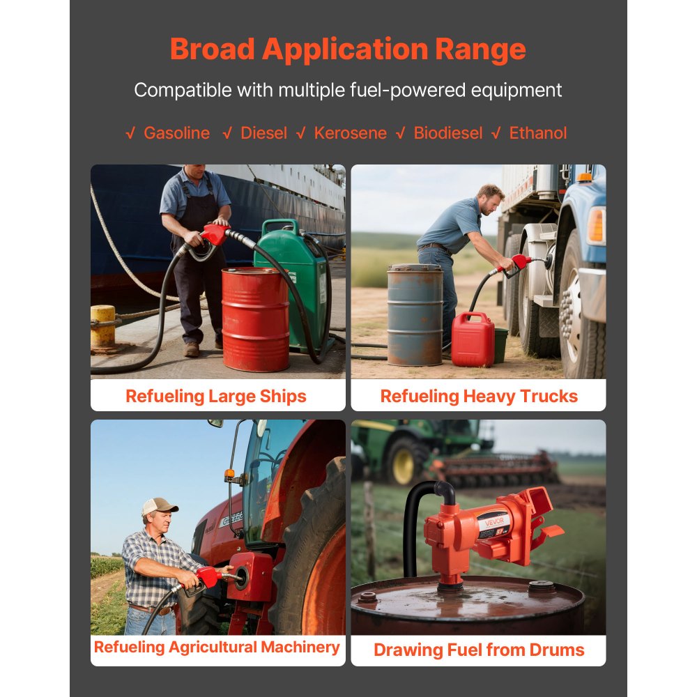 Γρήγορη Μεταφορά Καυσίμου 15 GPM: Αυτή η αντλία μεταφοράς καυσίμου παρέχει μέγιστο ρυθμό ροής 15 GPM (57 L/min), μέγιστη ανύψωση αναρρόφησης 8 ft (2,4 m) και μέγιστη ανύψωση 37 ft (11,28 m). Ιδανική για την τροφοδοσία βαρέων μηχανημάτων, μεγάλων δεξαμενών καυσίμου και εξοπλισμού σε εργοτάξια. Κατασκευή από χυτοσίδηρο βαρέως τύπου: Κατασκευασμένη από ανθεκτικό χυτοσίδηρο για εξαιρετική αντοχή στην πίεση, τη φθορά και τη διάβρωση. Διαθέτει αδιάβροχο διακόπτη λειτουργίας, αυτή η αντλία μεταφοράς λαδιού κρατάει έξω το νερό για εξωτερικές και υγρές συνθήκες. Ευρεία συμβατότητα με ντίζελ: Σχεδιασμένη για βενζίνη, ντίζελ, κηροζίνη και βιοντίζελ. Αυτή η αντλία μεταφοράς καυσίμου ντίζελ υποστηρίζει διάφορα μηχανήματα που λειτουργούν με ντίζελ, όπως φορτηγά, εκσκαφείς, τρακτέρ, γεωργικά μηχανήματα, γεννήτριες και άλλα. Ενσωματωμένη προστασία υπερθέρμανσης: Αποτρέπει αυτόματα την υπερθέρμανση του κινητήρα κατά τη διάρκεια παρατεταμένης ή μη φυσιολογικής χρήσης. Αυτή η ηλεκτρική αντλία μεταφοράς λαδιού εξασφαλίζει ασφαλή και σταθερή λειτουργία και παρατείνει τη διάρκεια ζωής της αντλίας ακόμη και σε δύσκολες συνθήκες εργασίας. Τυπικό μέγεθος εισόδου και εξόδου: Διαθέτοντας τυπική είσοδο 1 ίντσας/25,4 mm και μέγεθος εξόδου 3/4 ίντσας/19,05 mm, αυτή η ηλεκτρική αντλία μεταφοράς ντίζελ επιτρέπει εύκολη εγκατάσταση και ευρεία συμβατότητα με μοτοσικλέτες, αυτοκίνητα, φορτηγά και άλλα μηχανήματα.