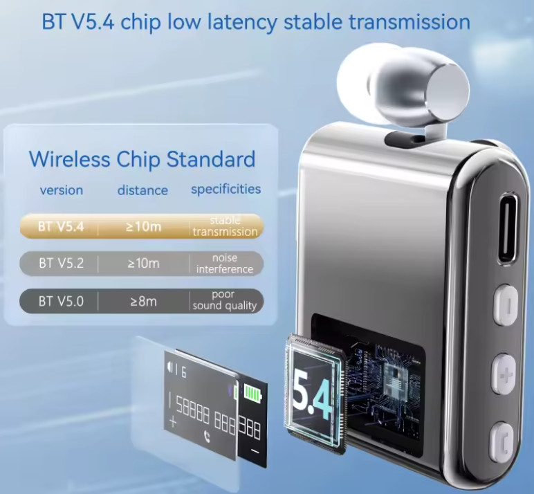 Ακουστικό Handsfree Bluetooth με σχεδιασμό clip-on-collar και επεκτεινόμενο καλώδιο.