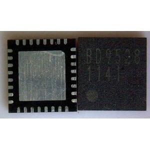 BD9528MUV is a 2-channel switching regulator controller with high output current which can achieve low output voltage (1V to 5.5V) from a wide inpute voltage range (5.5V to 28V). High efficiency for the switching regulator can be realized by utilizing an external N-MOSFET power transistor. A new technology calld H3Reg (High speed, High efficiency, High Performance) is a Rohm proprietary control method to realize ultra high transient response against load change. SLLM (Simple Light Load Mode) technology is also integrated to improve efficiency in ligh load mode, providing high efficiency over a wide load range. For protection and ease of use, 2-Channel LDO (5V/3.3V (total 100mA)), the soft start function, variable frequency function, short circuit protection function with timer latch, over voltage protection, and Power good function are all built in. This switching regulator is specially designed for Main Power Supply of laptop PC.