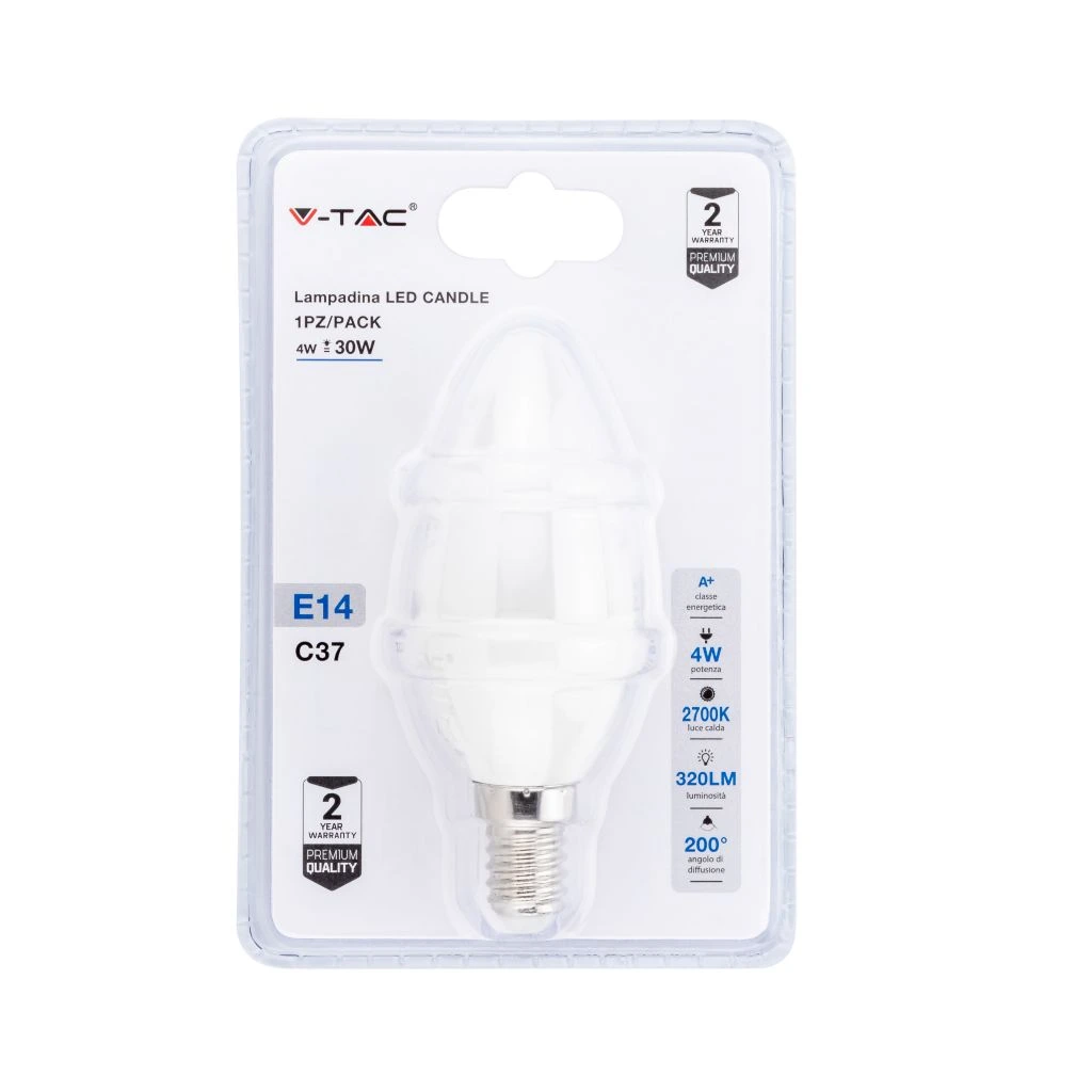 Ο Λαμπτήρας LED E14 της V-TAC σε σχήμα Κεριού προσφέρει έναν συνδυασμό παραδοσιακής αισθητικής και σύγχρονης τεχνολογίας φωτισμού. Με ισχύ μόλις 4W, ο λαμπτήρας αποδίδει φωτεινή ροή 320 lm, αντικαθιστώντας αποτελεσματικά έναν κλασικό λαμπτήρα πυρακτώσεως 30W. Η απόδοση σε Θερμό Λευκό φως (2700K) δημιουργεί μια ζεστή, φιλόξενη και χαλαρωτική ατμόσφαιρα, καθιστώντας τον ιδανική επιλογή για πολυελαίους, απλίκες τοίχου και διακοσμητικά φωτιστικά σπιτιού.