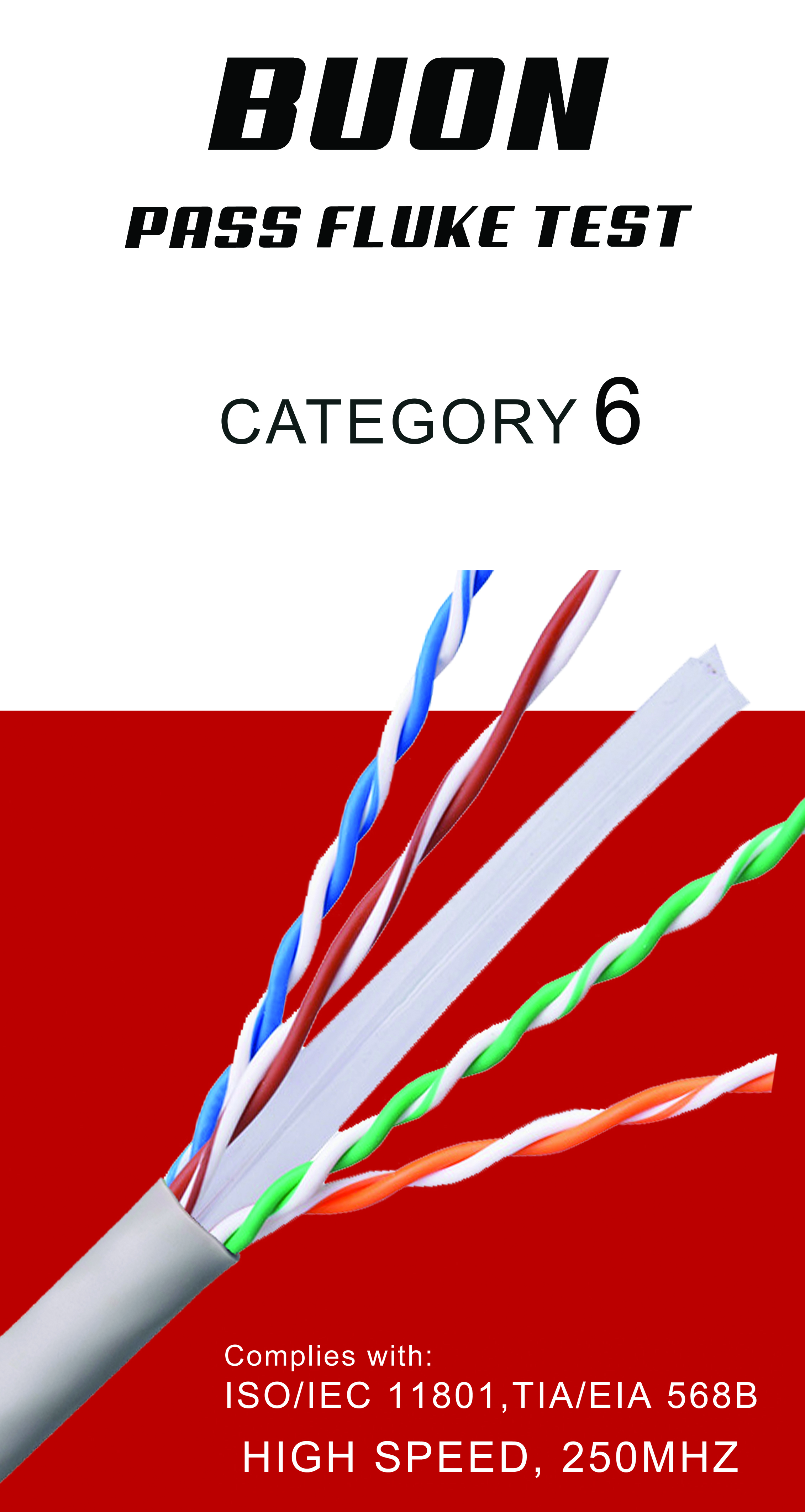 BUON 210 UTP CAT6 CABLE WITH PASS FLUKE TEST CU 0.56MM 23AWG CU 100M FLUKE Channel 90-100M (ΚΑΘΑΡΟΣ ΧΑΛΚΟΣ)