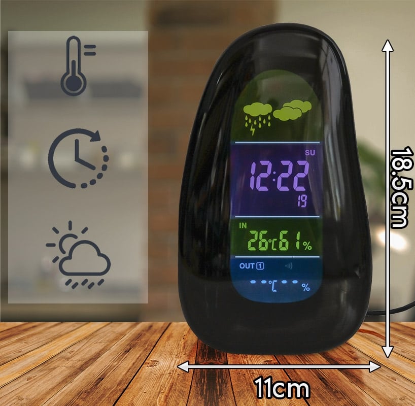 Ασύρματος Μετεωρολογικός Σταθμός Cobblestone που δίνει ακριβή αποτελέσματα σε πραγματικό χρόνο, εσωτερικής, εξωτερικής θερμοκρασίας και υγρασίας στην περιοχή σας, προσφέροντας σας τέσσερις προγνώσεις καιρού. Ενεργοποιείτε το διακόπτη ON / OFF και είστε σε θέση να γνωρίζετε τον καιρό! Επιτρέπει να κάνετε απλή, γρήγορη και σαφή την κατανόηση της τρέχουσας θερμοκρασίας και της υγρασίας. Δυναμικός πολύχρωμος φωτισμός LED σε ένα ευδιάκριτο LED panel που μπορεί επίσης να εμφανίζει χρόνο, ημερομηνία και εβδομάδα. YGH-392 Ασύρματος μετεωρολογικός σταθμός - Ρολόι LED για εξωτερικούς και εσωτερικούς χώρους με απομακρυσμένο αισθητήρα RF. Προδιαγραφές ρολογιού-μετεωρολογικού σταθμού: Εύρος ανίχνευσης θερμοκρασίας: 0 - 50 Κελσίου Εύρος ανίχνευσης υγρασίας: 20% - 95% Περίοδος ανίχνευσης: 30 δευτερόλεπτα Απόκλιση ανίχνευσης θερμοκρασίας: +-1 βαθμός Πηγή ενέργειας: Καλώδιο USB / (DC 5V / 1A) Θερμοκρασία: βαθμός βαθμού Κελσίου / βαθμός Φαρενάιτ Ώρα: Σύστημα 12/24 ωρών Προδιαγραφές ασύρματου αισθητήρα: Εύρος ανίχνευσης θερμοκρασίας: -40 / 50 Κελσίου Εύρος ανίχνευσης υγρασίας: 20% - 95% Ανάλυση: 1% Πηγή ενέργειας: 2 x AAA μπαταρία (δεν περιλαμβάνεται) Ρεύμα διαρκείας:> 30UA Τάση ισχύος: 2.5V - 3.3V Κύρια χαρακτηριστικά: Ένδειξη εξωτερικής και εσωτερικής θερμοκρασίας - υγρασίαςΑσύρματος αισθητήρας RF ασύρματης μετάδοσηςΔιαρκής λειτουργία προβολής ημερολογίουΛειτουργία ρολογιού, ξυπνητηριού / αναβολήςΔυναμική πολύχρωμη εμφάνιση καιρούΣυνοδεύεται από εξωτερικό αισθητήρα θερμοκρασίας / υγρασίαςΧαρούμενος LED φωτισμόςΜέγεθος προϊόντος : 18,5 x 11 x 5,5 cmΒάρος προϊόντος: 0,320 kg Εγγύηση Ενός Έτους