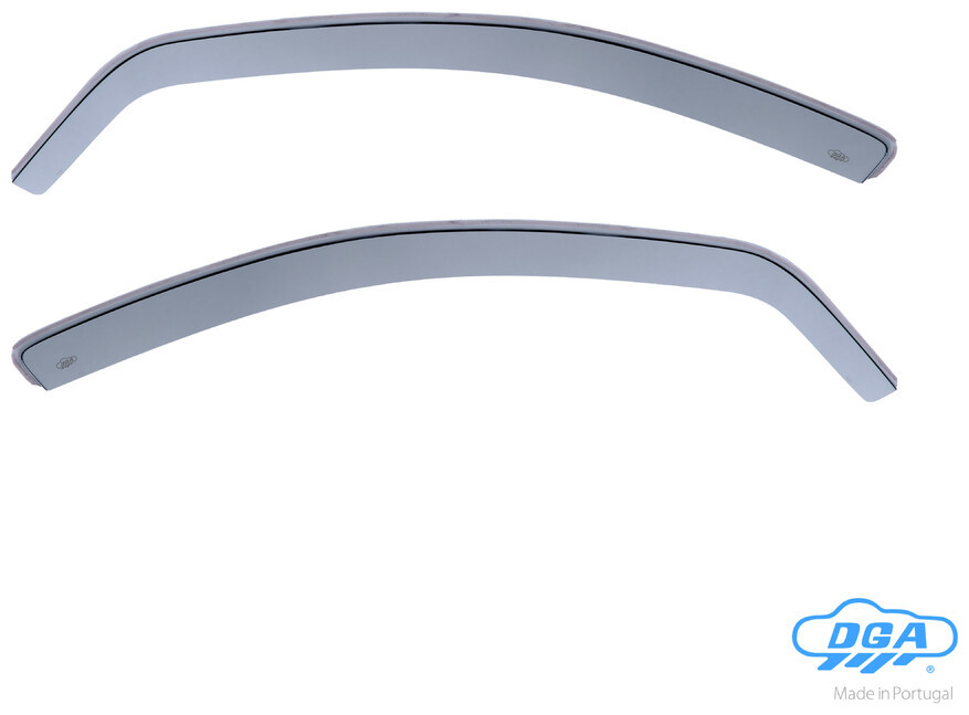 Ανεμοθραύστες παραθύρων από την εταιρία DGA, πορτογαλικής προέλευσης, κατασκευασμένοι από ειδικό πλαστικό υψηλής ποιότητας και εξαιρετικής αντοχής σε φιμέ, κατάλληλοι για τις μπροστά πόρτες του οχήματός σας. Τοποθετούνται κολλητοί/χωνευτοί μέσα στην υποδοχή του τζαμιού (τσιμούχα παραθύρου) με ταινία διπλής όψης (περιλαμβάνεται στη συσκευασία), χωρίς να επηρεάζουν καθόλου την εύρυθμη λειτουργία του τζαμιού, τον μηχανισμό του παραθύρου ή τις αντιηλιακές μεμβράνες σας (φιλμ παραθύρων).