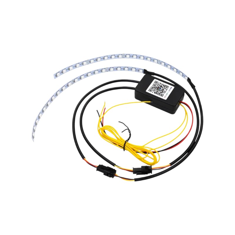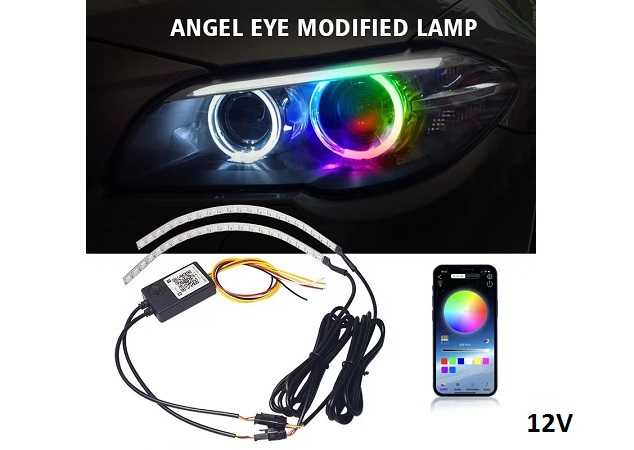 Κιτ φωτισμού αυτοκινήτου LED "Angel Eye" RGB με δυνατότητα ελέγχου μέσω εφαρμογής Bluetooth, προσφέροντας μια ευρεία γκάμα χρωμάτων και εφέ φωτισμού.