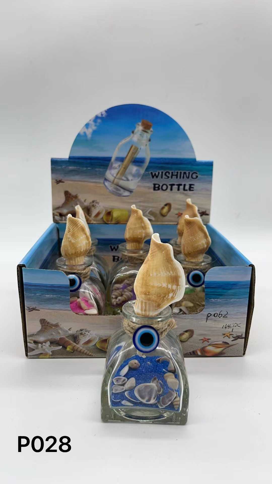 Χειροποίητο, διακοσμητικό Souvenir γυάλινο διαφανές μπουκαλάκι - Whishing Bottle, με γέμισμα από αληθινά κοχύλια και υπέροχες λεπτομέρειες που αντιπροσωπεύουν το καλοκαίρι και τη θάλασσα. Ιδανικό ως αναμνηστικό ταξιδιού ή δώρο.