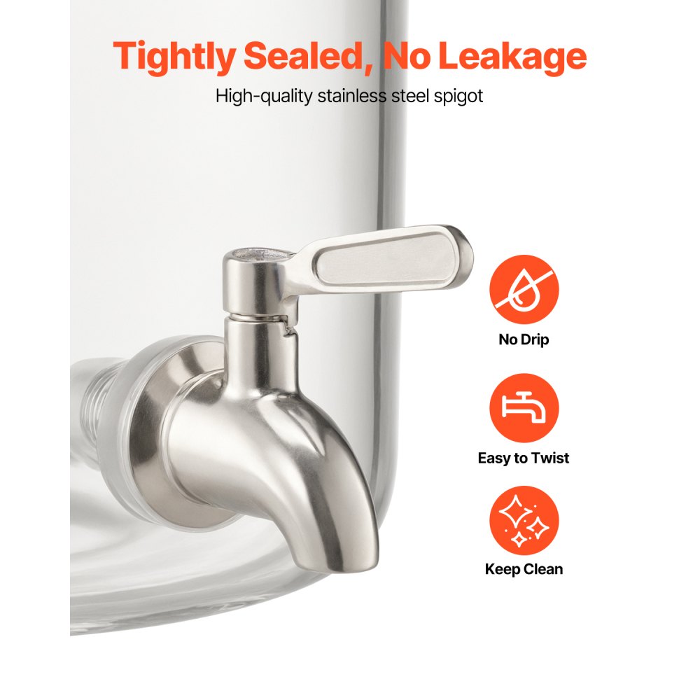 Συνεχής Παροχή 8L: Ο διανομέας ποτών μας έχει μεγάλη χωρητικότητα 8L, σχεδιασμένος για να σας εξοικονομεί χρόνο και να μειώνει την ανάγκη για συχνές αναπληρώσεις. Εξασφαλίζει συνεχή παροχή ποτών για πολυσύχναστα εστιατόρια, ξενοδοχεία και πάρτι. Στόμιο χωρίς στάλαξη: Εξοπλισμένο με ένα ερμητικά σφραγισμένο στόμιο από ανοξείδωτο ατσάλι, το δοχείο ποτών είναι βολικό για διανομή χωρίς διαρροές, επομένως δεν χρειάζεται να ανησυχείτε για τον καθαρισμό των χυμένων ποτών. Βοηθά στη διατήρηση του σταθμού ποτών σας καθαρού και αισθητικά όμορφου. Τέλεια εμφάνιση: Ο διαφανής σχεδιασμός αναδεικνύει όμορφα τον χυμό ή τα ποτά σας, ιδανικός για την εμφάνιση τσαγιού φρούτων, παγωμένου τσαγιού, χυμού, νερού και άλλων. Εύκολο στη χρήση: Ο σχεδιασμός με το φαρδύ στόμιο διευκολύνει την αναπλήρωση του διανομέα χυμού, η βάση από ξύλο μπαμπού παρέχει σταθερή στήριξη και εύκολη διανομή, το καπάκι εμποδίζει την είσοδο σκόνης ή βρωμιάς, διασφαλίζοντας ότι οι χυμοί σας παραμένουν καθαροί και νόστιμοι. Εύκολος καθαρισμός: Κατασκευασμένος από βοριοπυριτικό γυαλί κατάλληλο για τρόφιμα, ο διανομέας χυμού για πάρτι είναι ανθεκτικός στους λεκέδες, ανθεκτικός και κατάλληλος για πλυντήριο πιάτων. Το αφαιρούμενο καπάκι και το φαρδύ άνοιγμα κάνουν τον καθαρισμό του εσωτερικού πανεύκολο.