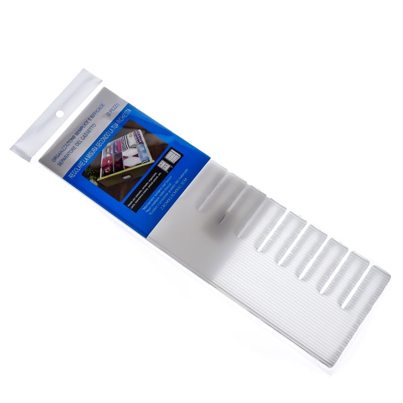 Διαχωριστικά συρταριών για καλύτερη οργάνωση του χώρου σας, εύκολα στην τοποθέτηση, κατασκευασμένα απο υψηλής αντοχής πολυκαρβονικό υλικό. Ύψος: 13cm Μήκος: 42,3cm