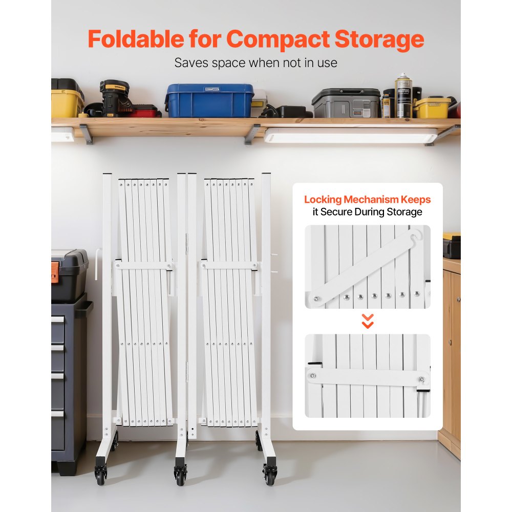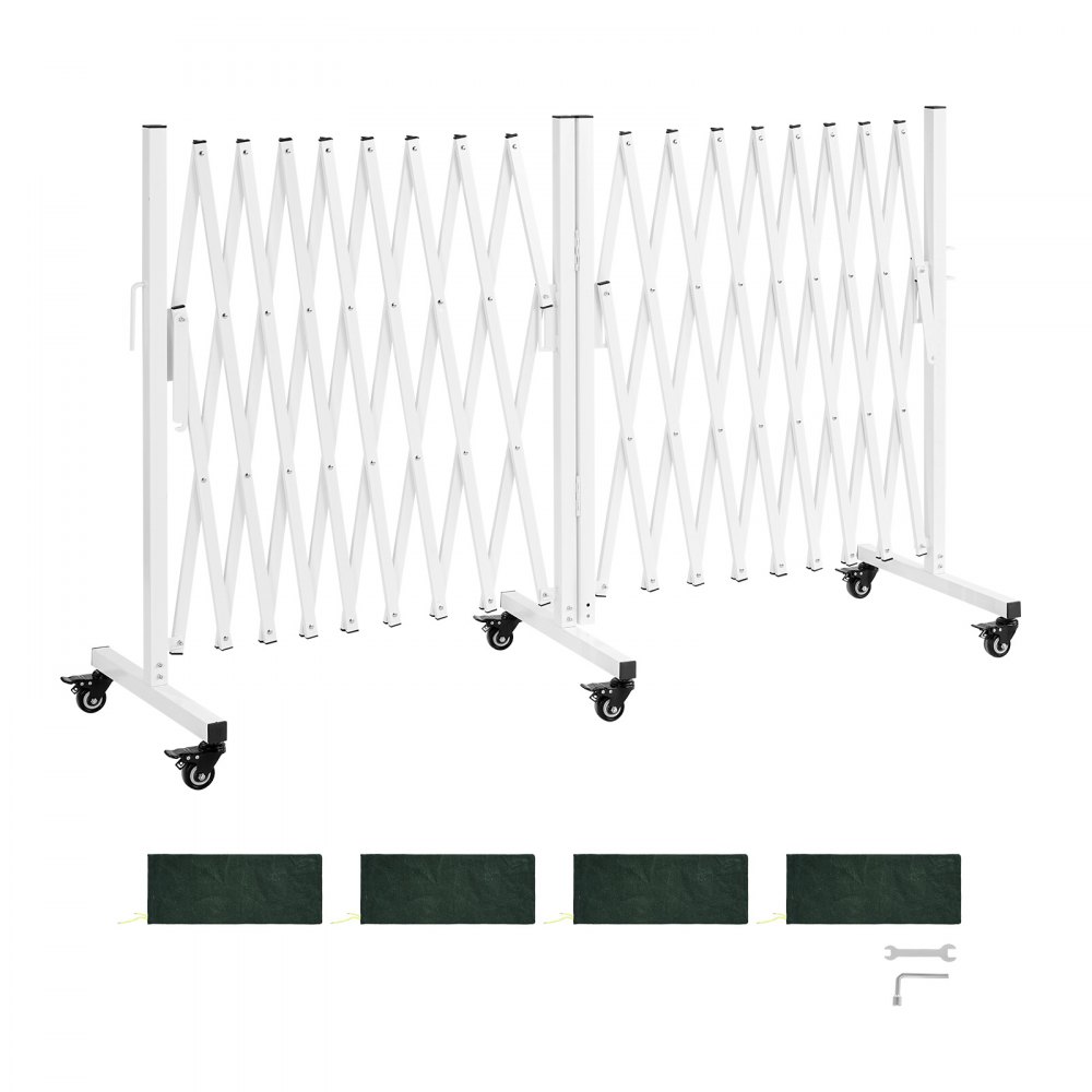 Αποκλεισμός καθορισμένων περιοχών: Τα διπλά επεκτάσιμα οδοφράγματα VEVOR σάς επιτρέπουν να δημιουργήσετε γρήγορα ένα μεγάλο φράγμα ασφαλείας για να αποκλείσετε κινδύνους και να προστατεύσετε το κοντινό περιβάλλον. Επεκτάσιμο μήκος: 5,48 μ. (18 πόδια), Μήκος σε σύμπτυξη: 620 χιλ. (24,4 ίντσες), Ύψος: 1020 χιλ. (40 ίντσες) Περιστροφή 0–180°: Οι επεκτάσιμες πύλες οδοφραγμάτων μπορούν να περιστραφούν από τον μεσαίο μεντεσέ, προσαρμόζοντας σε διαφορετικές διατάξεις και ανάγκες ελέγχου περιοχής. Επίσης, διαθέτει σύνδεσμο αλληλοσύνδεσης που σας επιτρέπει να συνδέσετε περισσότερα οδοφράγματα μεταξύ τους για μεγαλύτερη κάλυψη περιοχής. Ανθεκτικά και Στιβαρά: Τα επεκτάσιμα στηθαία ασφαλείας μας είναι κατασκευασμένα από πλέγμα αλουμινίου και σιδερένιες κολόνες, με επιφάνεια βαμμένη με ηλεκτροστατική βαφή για μακροχρόνια αντοχή. Περιλαμβάνονται τέσσερις σακούλες άμμου για ενίσχυση της σταθερότητας και αποφυγή ανατροπής σε περίπτωση ανέμου και βροχής. Ομαλή κινητικότητα και ασφαλές κλείδωμα: Εξοπλισμένο με 6 κλειδώσιμα ροδάκια, αυτό το φορητό πτυσσόμενο μεταλλικό φράγμα κυλάει ομαλά σε διαφορετικές επιφάνειες. Και τα ενσωματωμένα φρένα σας επιτρέπουν να το ασφαλίσετε με ασφάλεια στη θέση του για σταθερή τοποθέτηση. Πτυσσόμενη και εξοικονομούσα χώρο αποθήκευση: Αυτή η περιστρεφόμενη περίφραξη ασφαλείας διπλώνει εύκολα όταν δεν χρησιμοποιείται και το ενσωματωμένο κλιπ ασφάλισης την κρατάει ασφαλώς κλειστή κατά την αποθήκευση, ιδανική για βεράντες, κήπους, σκάλες και άλλα οικιστικά περιβάλλοντα.