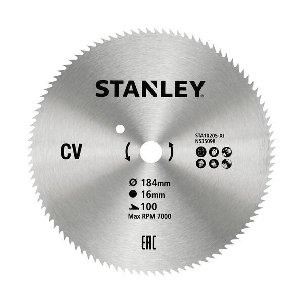 Δίσκος stanley διαμαντέ κοπής ξύλου και κόντρα πλακέ fine cut με τρύπα 16mm, διάμετρο 184mm και 100 δόντια / STA10205-XJ