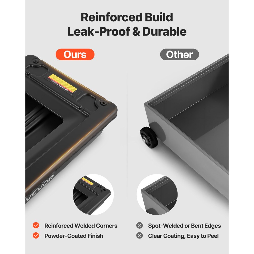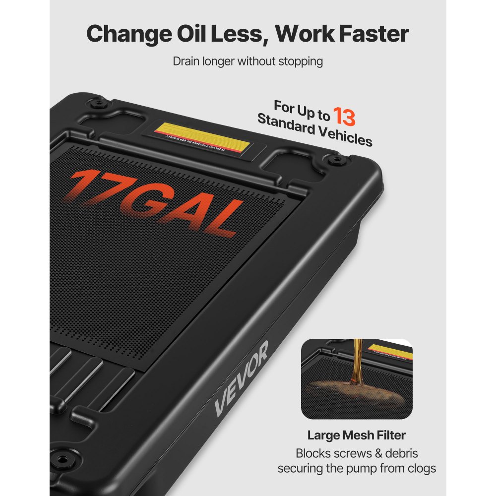 Αποδοτική Αποστράγγιση Λαδιού: Αυτή η λεκάνη αποστράγγισης λαδιού χαμηλού προφίλ χρησιμοποιεί αντλία 12V με ανύψωση 7 μέτρων, επιτρέποντάς σας να αποστραγγίζετε τα χρησιμοποιημένα λάδια απευθείας στις δεξαμενές. Πείτε αντίο στην ακατάστατη έκχυση και απολαύστε ταχύτερες, καθαρότερες αλλαγές λαδιού. Μεγάλη χωρητικότητα 17 γαλονιών: Η λεκάνη αποστράγγισης λαδιού 17 γαλονιών αποθηκεύει λάδι από πολλά οχήματα ταυτόχρονα. Ένας εύκαμπτος σωλήνας 2,2 μέτρων παρέχει ομαλή και σταθερή αποστράγγιση, καθιστώντας την ιδανική για καταστήματα, αγροκτήματα και πολύωρες εργασίες. Σχεδιασμός χαμηλού προφίλ: Ο εξαιρετικά χαμηλός σχεδιασμός του κυλιόμενου δοχείου αποστράγγισης λαδιού χωράει εύκολα κάτω από χαμηλά αυτοκίνητα, μοτοσικλέτες και ATV χωρίς τη χρήση γρύλου. Μπορείτε να ξεκινήσετε γρήγορα την αποστράγγιση, ακόμη και σε στενούς χώρους. Εύκολη μετακίνηση πλήρους εμβέλειας: Τέσσερις τροχοί, συμπεριλαμβανομένων δύο περιστρεφόμενων τροχών 3 ιντσών με φρένα και δύο σταθερών τροχών 4 ιντσών, κάνουν το καρότσι αποστράγγισης λαδιού μας ομαλό στην κύλιση όταν είναι γεμάτο. Μια πτυσσόμενη λαβή σε σχήμα Τ προσθέτει ευέλικτο σύστημα διεύθυνσης. Ανθεκτική κατασκευή από χάλυβα: Το πλαστικό σώμα υψηλής αντοχής αντιστέκεται στη θερμότητα και το λάδι, διατηρώντας το σχήμα του ακόμα και με ζεστά υγρά. Τα σφραγισμένα εξαρτήματα εμποδίζουν τις διαρροές, ενώ ένα μεγάλο φίλτρο πλέγματος της φορητής λεκάνης αποστράγγισης λαδιού μπλοκάρει τα υπολείμματα για να διατηρεί την αντλία ομαλή λειτουργία.