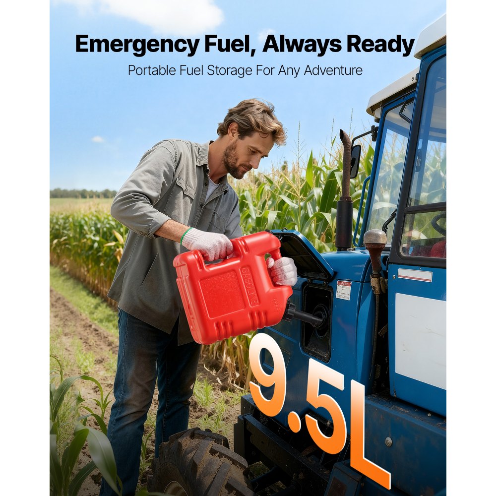 Συμπαγές μέγεθος: Χρειάζεστε εφεδρικό καύσιμο χωρίς να χάσετε χώρο; Αυτό το δοχείο βενζίνης 9,5 λίτρων (11 x 7,7 x 12,8 ίντσες) χωράει τέλεια στο πορτμπαγκάζ σας. Είναι ελαφρύ αλλά αξιόπιστο για ταξίδια, κάμπινγκ ή υπαίθριες εργασίες. Ασφαλής αντι-χαλάρωση: Μισείτε τις ακατάστατες διαρροές; Αυτό το δοχείο καυσίμου διαθέτει δακτύλιο στεγανοποίησης που ασφαλίζει σφιχτά, ακόμα και σε δύσκολες διαδρομές, διατηρώντας το καύσιμο εκεί που ανήκει χωρίς σπατάλη. Ομαλή Γρήγορη Ροή 15 L/min: Τελειώσατε με τα ξαναγεμίσματα "κολλάει-κολλάει"; Αυτό το καύσιμο μπορεί να χυθεί έως και 15 L/min με εύκαμπτο σωλήνα 20 mm και διπλή βαλβίδα εξαερισμού για σταθερή, ομαλή ροή κάθε φορά. Σχεδιασμός μακράς διαρκείας: Θέλετε ανθεκτικότητα; Αυτή η δεξαμενή καυσίμου HDPE έχει τοιχώματα 2 mm που αντέχουν σε πτώσεις, χτυπήματα και ήλιο. Το στόμιο επέκτασης PP κάνει κάθε αναπλήρωση εύκολη και καθαρή. Ανθεκτική και ακριβής μέτρηση: Χρειάζεστε ακριβείς μετρήσεις; Οι ανάγλυφες σημάνσεις δείχνουν την πραγματική χωρητικότητα, βοηθώντας σας να αποφύγετε διαρροές, σπατάλες ή υποπλήρωση με γρήγορους και ακριβείς ελέγχους.
