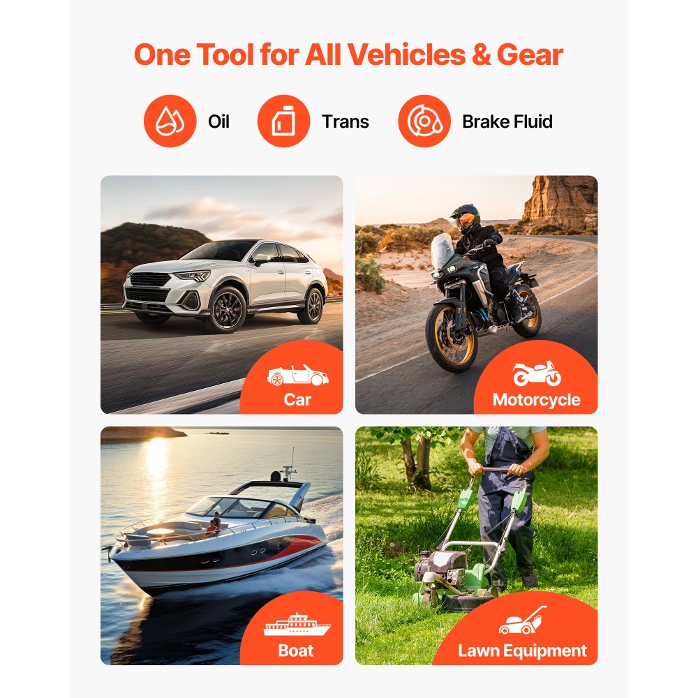 Αεροστεγής σφράγιση χωρίς στάλαξη: Αυτός ο απορροφητήρας υγρών χρησιμοποιεί μια μονοκόμματη δεξαμενή, ακριβείς δακτυλίους Ο και σφραγισμένα εξαρτήματα για να κλειδώνει τον αέρα, να μειώνει τις διαρροές στις θύρες και τη βάση και να διατηρεί τον χώρο εργασίας σας καθαρό από την αρχή μέχρι το τέλος. Χειροκίνητος/Πνευματικός διακόπτης: Αυτή η αντλία εξαγωγής λαδιού λειτουργεί χειροκίνητα με κενό για εργασίες άμεσης εκκίνησης ή συνδέεται με έναν αεροσυμπιεστή για μετάβαση σε πνευματική λειτουργία και διατήρηση της αποτελεσματικής λειτουργίας των ροών εργασίας υψηλής ζήτησης. Κιτ εύκαμπτων σωλήνων πολλαπλών μεγεθών: Αυτό το κιτ αντλίας εξαγωγής υγρού περιλαμβάνει έναν κύριο εύκαμπτο σωλήνα συν τρεις σωλήνες επέκτασης που φτάνουν βαθιά μέσα στα κάρτερ λαδιού για να μαζεύουν τα υπολείμματα, καθώς και έναν ειδικό εύκαμπτο σωλήνα υγρού φρένων για ακριβείς, στοχευμένες εργασίες σέρβις. Ευρεία συμβατότητα: Αυτός ο απορροφητήρας υγρού κενού χειρίζεται λάδι κινητήρα, ψυκτικό, υγρό φρένων και υγρό κιβωτίου ταχυτήτων. Συντηρείτε αυτοκίνητα, φορτηγά, μοτοσικλέτες, σκάφη και εξοπλισμό γκαζόν με ένα εύχρηστο εργαλείο. Ανθεκτική δεξαμενή 9,5 λίτρων: Αυτή η ημιδιαφανής δεξαμενή PE του συλλέκτη λαδιού με ράβδο μέτρησης στάθμης λαδιού αντιστέκεται στη διάβρωση και τη γήρανση. Παρακολουθείτε τα επίπεδα με μια ματιά, χρησιμοποιείτε περισσότερο χρόνο μεταξύ των κενών και αντιμετωπίζετε τη συχνή χρήση με σιγουριά.