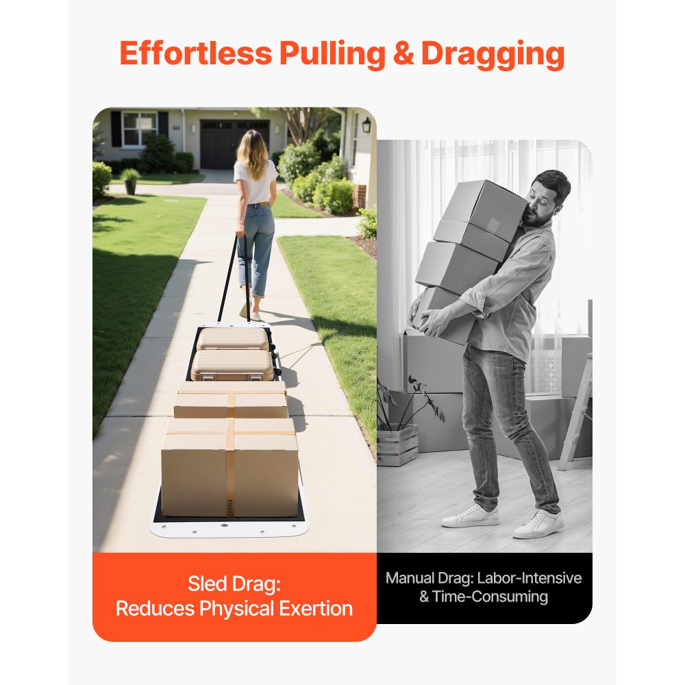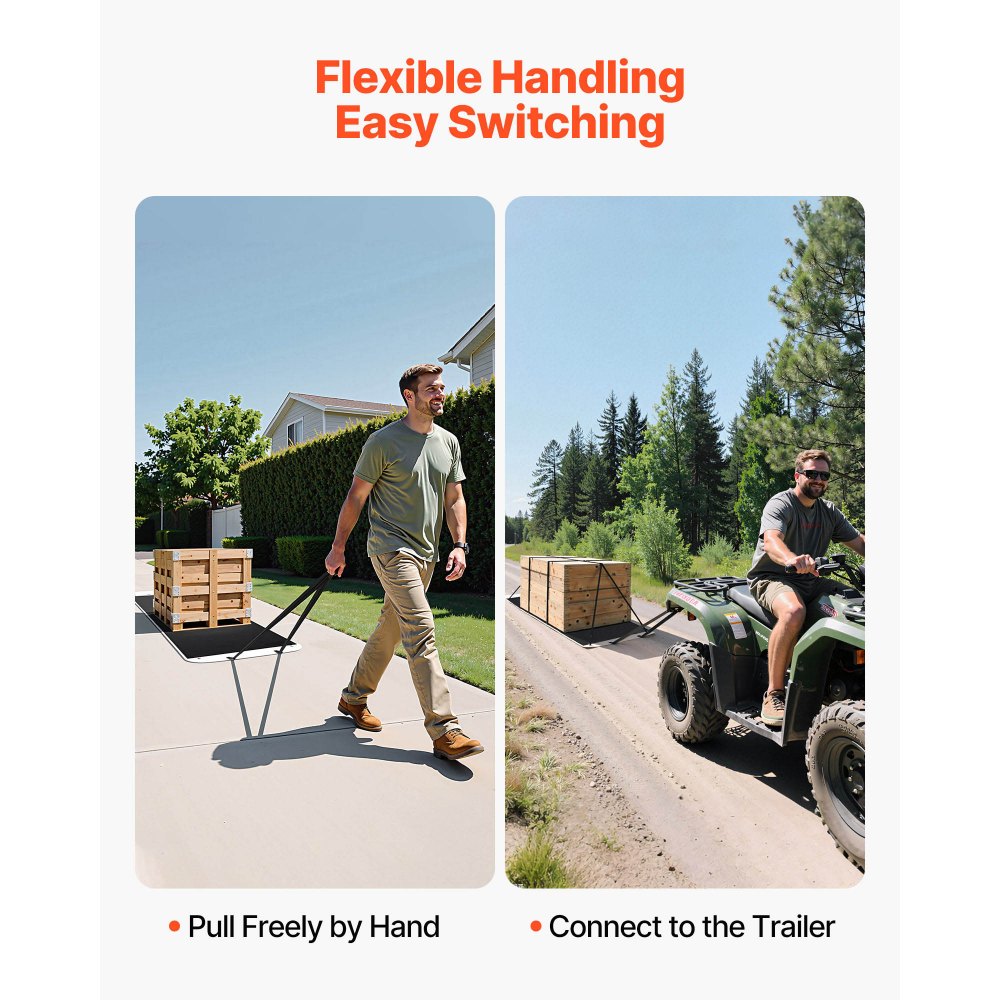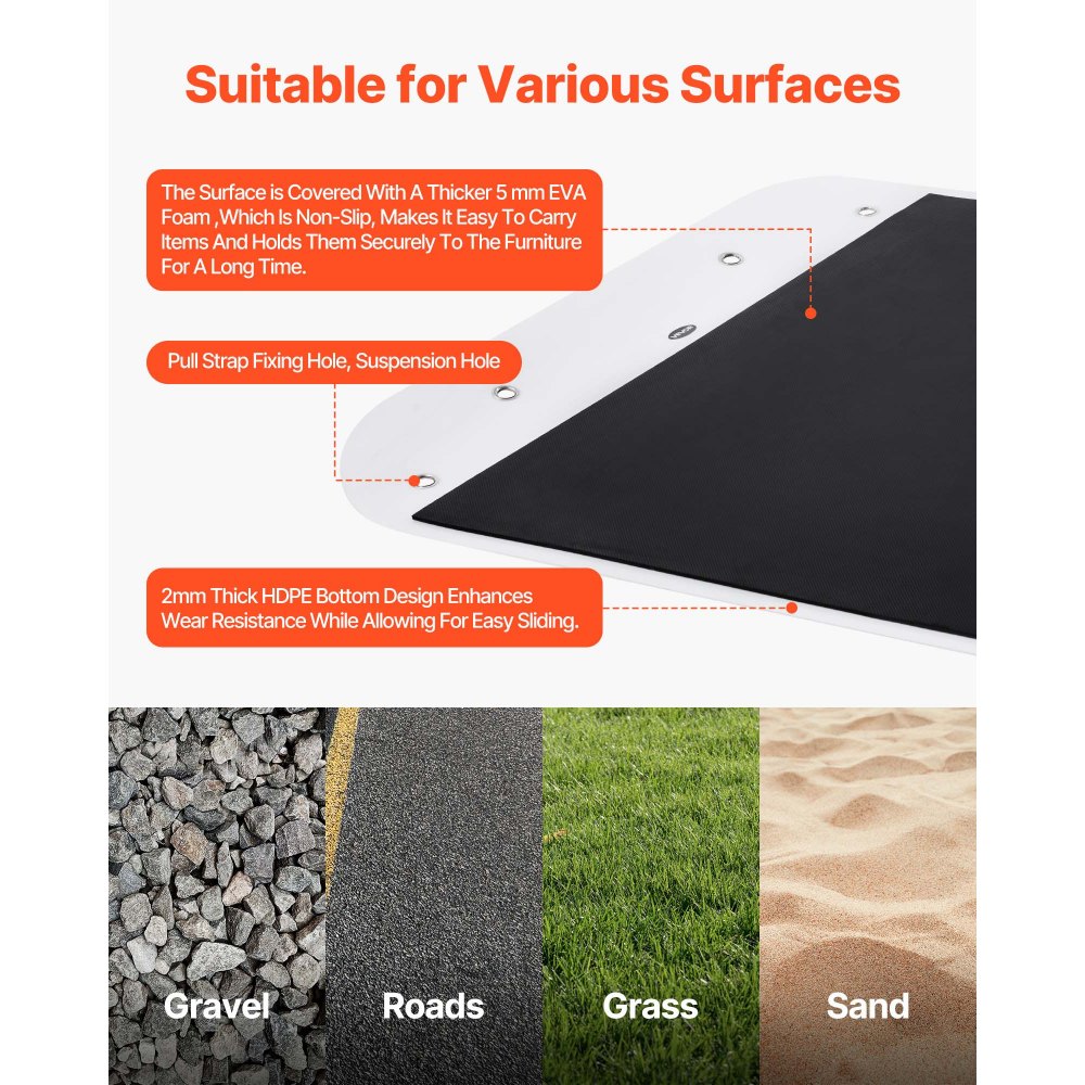 Ικανότητα φορτίου βαρέως τύπου: Το έλκηθρο έλξης αυλής υποστηρίζει εύκολα έως και 725,75 κιλά, ιδανικό για τη μεταφορά βαρέων αντικειμένων όπως ξύλο, πέτρες και έπιπλα. Μειώνει τα πολλαπλά ταξίδια, εξοικονομώντας χρόνο και κάνοντας τη μεταφορά πιο αποτελεσματική, καλύπτοντας όλες τις ανάγκες μεταφοράς βαρέως τύπου. Κατασκευή Διπλής Επίστρωσης: Κατασκευασμένο από υλικά διπλής επίστρωσης PE και EVA. Το PE παρέχει εξαιρετική αντοχή στη φθορά και το κρύο, ενώ το στρώμα EVA πάχους 0,2 ιντσών / 5 mm προσφέρει αντιολισθητικές ιδιότητες, αυξάνοντας την τριβή για αποτελεσματική προστασία αντικειμένων κατά τη μεταφορά. Το έλκηθρο αυλής μας για μεταφορά είναι ιδανικό για τη μετακίνηση επίπλων, συσκευών και άλλων. Ρυμούλκηση χωρίς κόπο: Εξοπλισμένο με δύο ιμάντες υψηλής αντοχής, το βοηθητικό έλκηθρο προσφέρει ισχυρή δύναμη έλξης, εξασφαλίζοντας εύκολη μετακίνηση βαρέων αντικειμένων χωρίς προσπάθεια, εξοικονομώντας χρόνο και ενέργεια κατά τη μεταφορά. Εύκολος καθαρισμός: Απλώς ξεπλύνετε ή σκουπίστε το έλκηθρο με το drag glider μετά τη χρήση για να αφαιρέσετε τη βρωμιά, τους λεκέδες αίματος και το χιόνι, διατηρώντας το καθαρό και εξοικονομώντας σας χρόνο καθαρισμού. Ευέλικτη χρήση: Αυτό το πλαστικό έλκηθρο κήπου είναι κατάλληλο για οικιακές αυλές, αγροτικές εργασίες ή βιομηχανική ανύψωση βαρέων αντικειμένων. Ιδιαίτερα κατάλληλο για εργάτες ή αγρότες που μετακινούν συχνά βαριά φορτία, βελτιώνοντας την αποδοτικότητα της εργασίας και μειώνοντας τη σωματική καταπόνηση.
