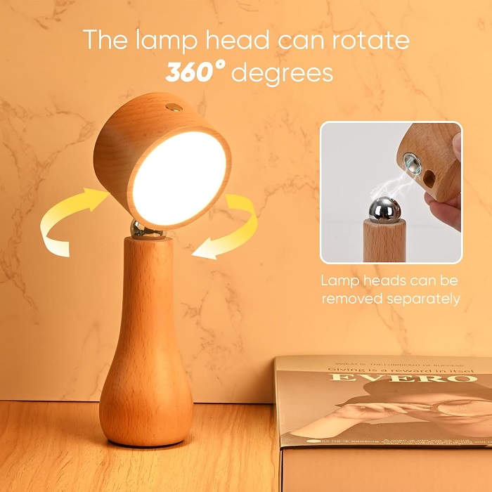 Επαναφορτιζόμενο επιτραπέζιο φωτιστικό LED περιστρεφόμενο - 215358 - Light Brown