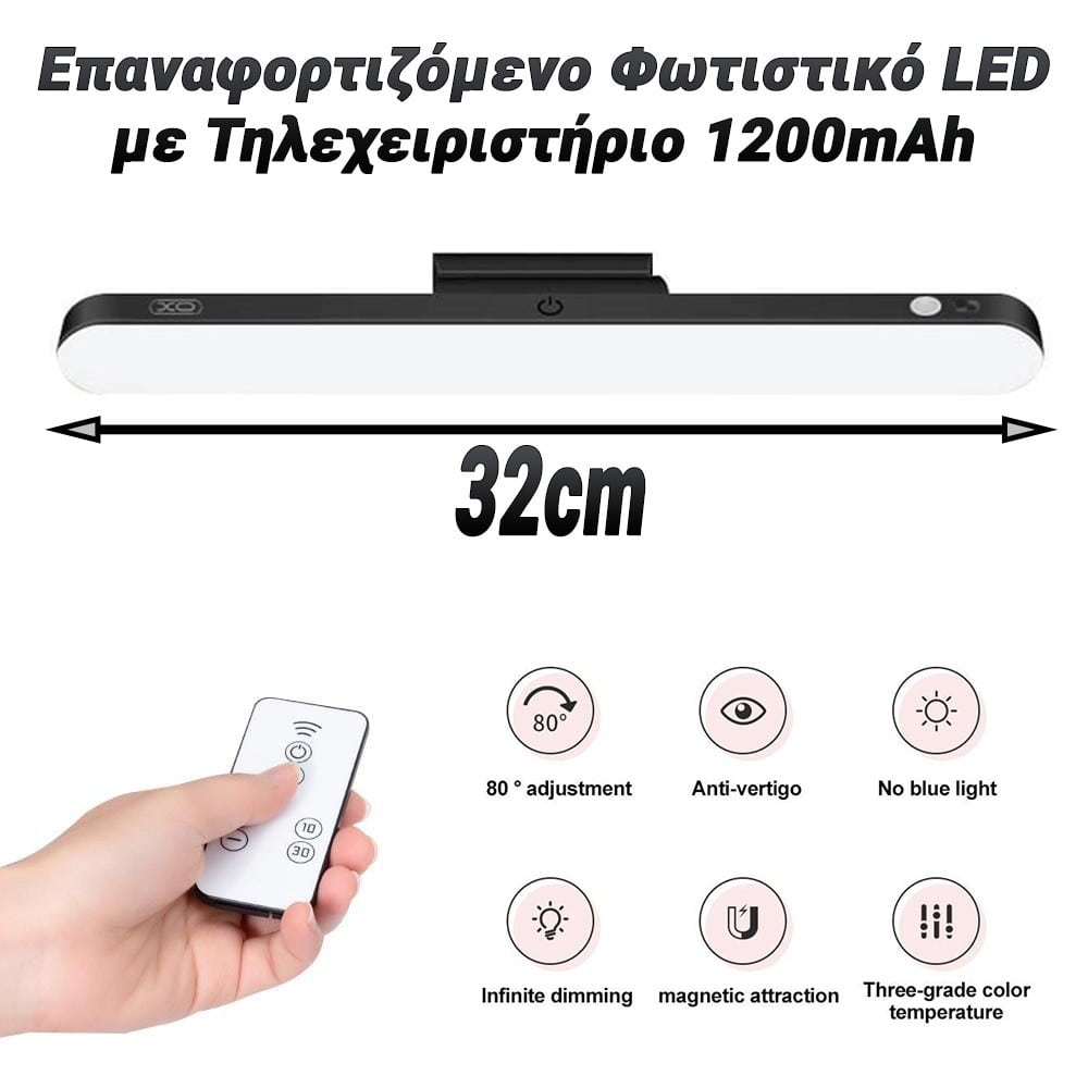 Το Επαναφορτιζόμενο Φωτιστικό LED με Τηλεχειριστήριο 1200mAh είναι μια φορητή λάμπα LED με ασύρματο τηλεχειριστήριο που μπορεί να φωτίσει τον χώρο σας με διάφορα επίπεδα φωτεινότητας. Έχει μπαταρία χωρητικότητας 1200mAh που μπορεί να φορτιστεί μέσω USB και παρέχει έως και 15 ώρες συνεχούς λειτουργίας σε χαμηλή φωτεινότητα και έως και 4 ώρες στη μέγιστη φωτεινότητα.Η λάμπα μπορεί να ελεγχθεί από το ασύρματο τηλεχειριστήριο, το οποίο περιλαμβάνει τρεις βασικές λειτουργίες: ανάβει/σβήνει τη λάμπα, ρυθμίζει τη φωτεινότητα και αλλάζει το χρώμα του φωτός. Μπορείτε να επιλέξετε από μια ποικιλία χρωμάτων.Έχει μικρό μέγεθος και είναι εύκολη στη μεταφορά, καθώς μπορεί να τοποθετηθεί σε οποιοδήποτε σημείο του χώρου σας. Είναι ιδανικό για χρήση στο κρεβάτι, στο γραφείο ή σε οποιοδήποτε άλλο σημείο που χρειάζεστε φωτισμό. Χαρακτηριστικά: Μπαταρία 1200mAh: Επαναφορτιζόμενη, προσφέροντας αρκετές ώρες χρήσης με μία μόνο φόρτιση. Τηλεχειριστήριο: Εύκολη και άνετη χρήση για την αλλαγή της φωτεινότητας και των ρυθμίσεων φωτισμού από απόσταση. LED Φωτισμός: Οικονομικό και ενεργειακά αποδοτικό φωτιστικό με χαμηλή κατανάλωση ενέργειας. Εύκολη Φόρτιση: Συνδέεται μέσω USB για γρήγορη και εύκολη φόρτιση. Σύγχρονος Σχεδιασμός: Ελαφρύ και συμπαγές, κατάλληλο για οποιονδήποτε χώρο, από το σπίτι μέχρι το γραφείο. Υλικό: κέλυφος ABS + πλακέτα κυκλώματος από γυάλινες ίνες + γαλβανισμένος μαγνήτης + γαλβανισμένο φύλλο σιδήρουΠηγή φωτός: 28 χάντρες λαμπτήρων υψηλής φωτεινότητας 5730 LEDΠραγματική ισχύς: 2,5WΧρώμα φωτός: λευκό φως + ζεστό φως Αξεσουάρ:Μοντέλο και χωρητικότητα μπαταρίας: 1*1200mA(18650)Λειτουργία: σύντομο πάτημα 1ης ταχύτητας λευκό φως, 2ης ταχύτητας ζεστό φως, 3ης ταχύτητας λευκό + θερμό φως. παρατεταμένο πάτημα αδιάκοπη θαμπάδα.Χρόνος εκφόρτισης: η μέγιστη απόδοση της ταχύτητας 1≥4 ώρες, η μέγιστη απόδοση της ταχύτητας 2≥4 ώρες, η μέγιστη απόδοση της ταχύτητας 3≥2 ώρες.Μέγεθος: 20*320mm Βάρος: 122g Ανακαλύψτε την πρακτικότητα και την τεχνολογία του Επαναφορτιζόμενου Φωτιστικού LED με Τηλεχειριστήριο και απολαύστε ευέλικτο φωτισμό με στυλ και άνεση!