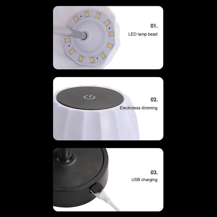 Επιτραπέζιο διακοσμητικό φωτιστικό επαναφορτιζόμενο, με μεγάλη αυτονομία μπαταρίας και ρυθμιζόμενη ένταση φωτισμού που προσαρμόζεται στις ανάγκες σας.