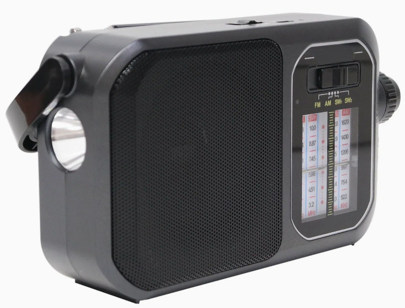 Φορητό επαναφορτιζόμενο ραδιόφωνο με δυνατό καθαρό ήχο, με φακό LED, σε πρακτικό σχεδιασμό ιδανικό για εύκολη μεταφορά παντού.