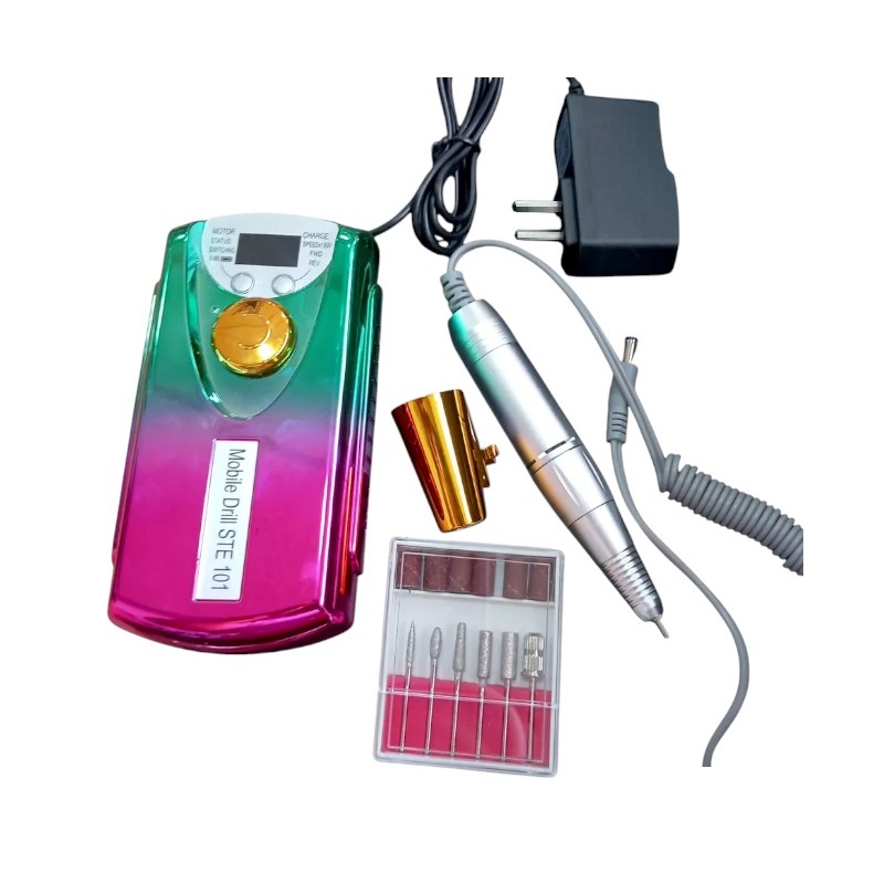Επαγγελματικός, επαναφορτιζόμενος τροχός μανικιούρ-πεντικιούρ με βάση στήριξης. Διαθέτει ρυθμιζόμενη ταχύτητα, λειτουργία μειωμένου θορύβου και δονήσεων και εργονομικό σχεδιασμό για εύκολη και άνετη χρήση. Χαρακτηριστικά: Ισχύς: 20W Δεξιόστροφη και αριστερόστροφη λειτουργία, Ψηφιακή οθόνη ενδείξεων, Ρυθμιζόμενη ταχύτητα: 1000-30000rpm, Προστασία από υπερθέρμανση, Προστασία από αντίστροφη ενεργοποίηση (καθυστέρηση αλλαγής 2 sec), Αυτονομία μπαταρίας έως 2 ώρες, Περιλαμβάνει: 6 φρέζες και 6 τροχολιθάκια.